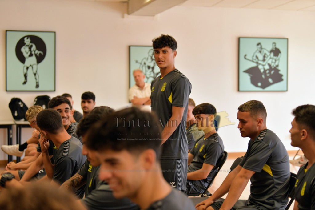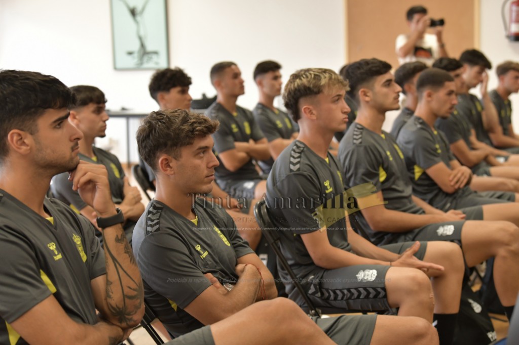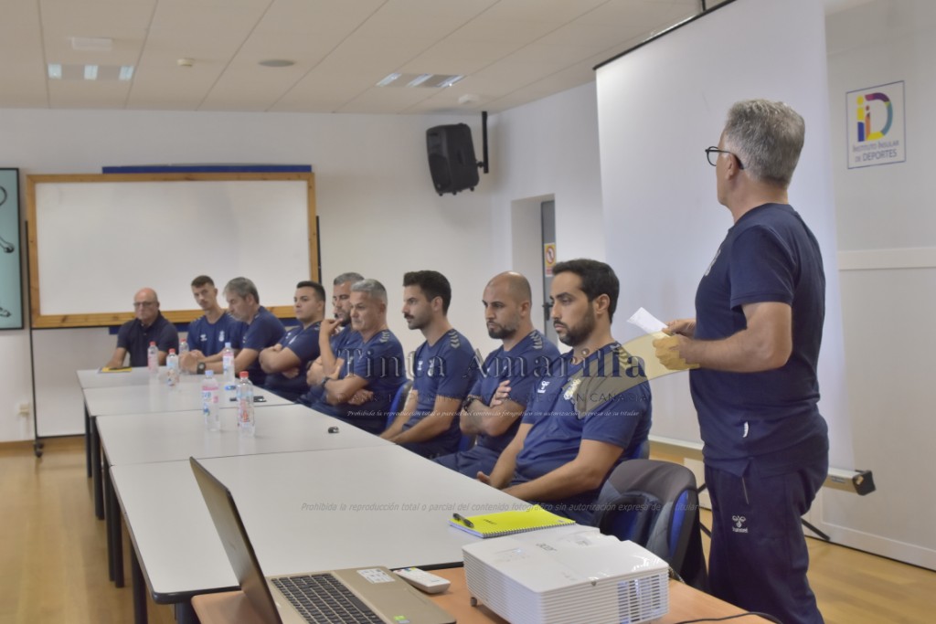 Tonono Rodríguez dio la bienvenida a la nueva plantilla, pendiente de confección definitiva, así como al cuerpo técnico que encabeza Raúl Martín. El entrenador del exitoso División de Honor amarillo recibe el encargo de intentar dar el salto a la Segunda RFEF con un bloque totalmente renovado.
