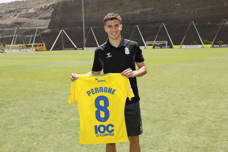 Máximo Perroneasume el papel que deja el lesionado Fabio González en la UD Las Palmas. Tanto que el joven argentino de 20 años llevará el dorsal 8 del futbolista del Sureste, en esta etapa de préstamo en el club grancanario, con permiso del Manchester City.