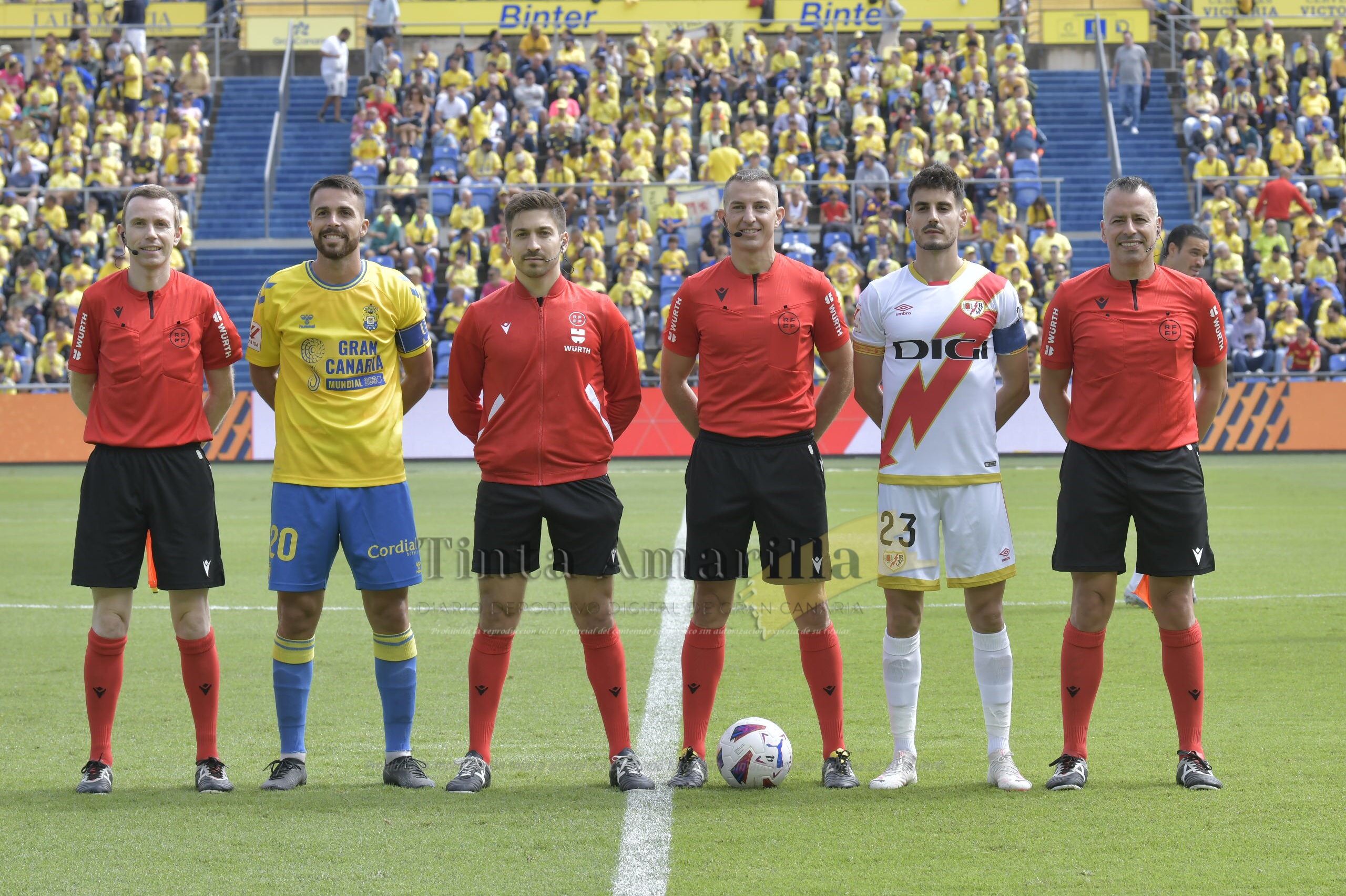 Árbitro: Javier Iglesias Villanueva (Colegio Gallego). Amarillas a Coco, Javi Muñoz, Álex Suárez, Perrone (Las Palmas) y Camello (Rayo). También a Francisco Rodríguez, en el banquillo rayista. Roja, por doble amonestación, al visitante Óscar Valentín (m. 93).