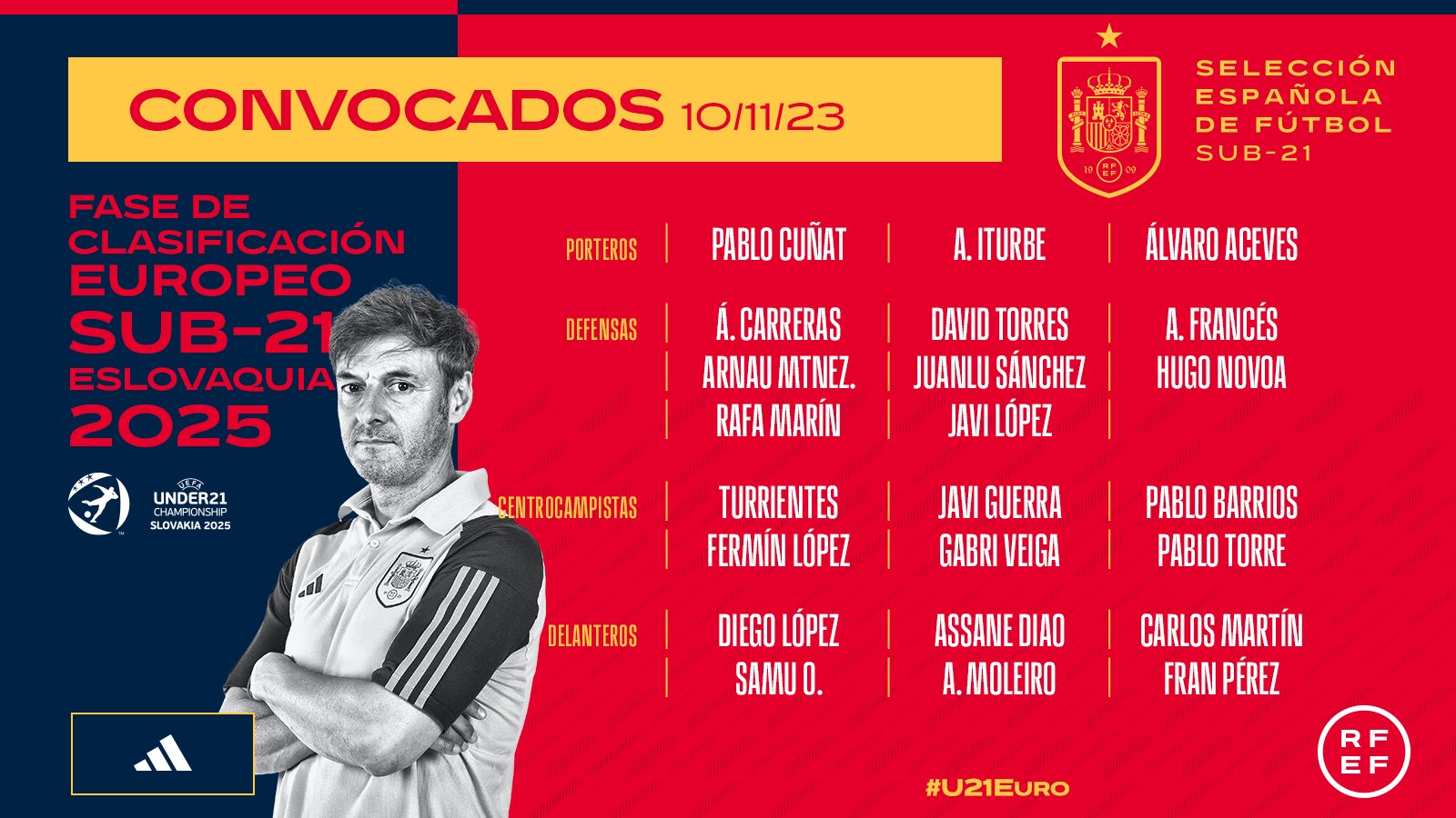 La UD Las Palmas precisa que el futbolista tinerfeño está citado para incorporarle a la concentración el próximo lunes, 13 de noviembre, en Las Rozas. El partido ante Hungría se disputará el viernes, 17 de noviembre, en el Estadio Nuevo Colombino (Huelva), a las 20.00 hora canaria, mientras que el encuentro ante Bélgica se llevará a cabo el martes, 21 de noviembre, en el Den Dreef Stadion de Lovaina, a las 19.00 hora de Canarias.