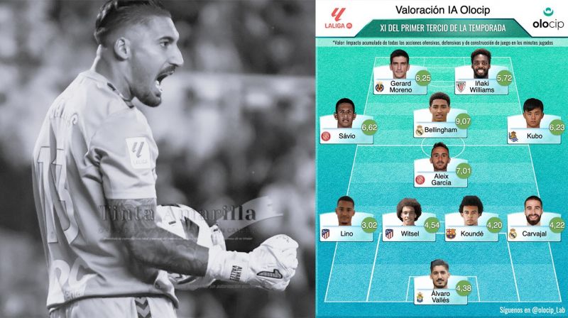 Un curioso estudio de la empresa Olocip sobre el fútbol español, coloca al portero Alvaro Valles en el once elegido con la herramienta de la Inteligencia Artificial tan de moda.