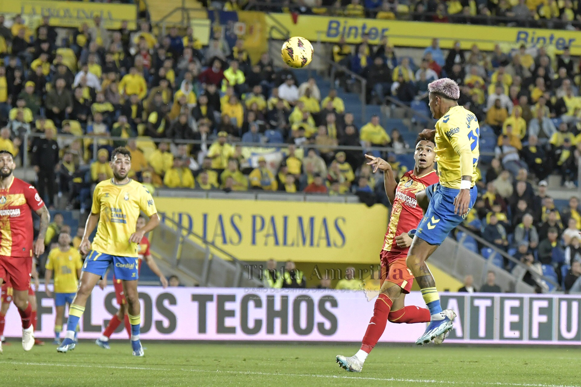 Con un 72% de posesión y máxima intensidad, Las Palmas afrontaba con mirada altiva el segundo periodo. Y todavía más cuando se repitió otra decisión de VAR, pero esta vez en sentido opuesto al del primer tiempo. Jaime Latre instó a su compañero Busquets Ferrer para que comprobara un pisotón del paraguayo Alderete a Loiodice. La amarilla esta vez se convirtió en tarjeta roja y el Getafe afrontaba el resto del partido -ahora sí- en inferioridad.