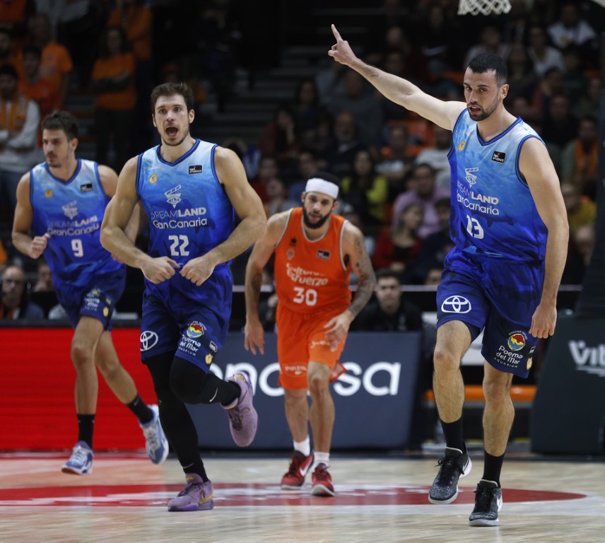 Se animaron los amarillos (vestidos de añil) con canastas de jugadores menos habituales. Debía ser la segunda línea la que sorprendiera al Valencia, que parecía lanzado a sentenciar el partido en el segundo cuarto (28-17). Con Lammers y Kljajic como anotadores principales, el Granca volvió a tomar la delantera en el marcador (28-29) en los tiros libres de Slaughter para empezar a jugarse un partido de alternancias en el luminoso en el que los visitantes hiceron mejor average en el segundo cuarto (16-20).