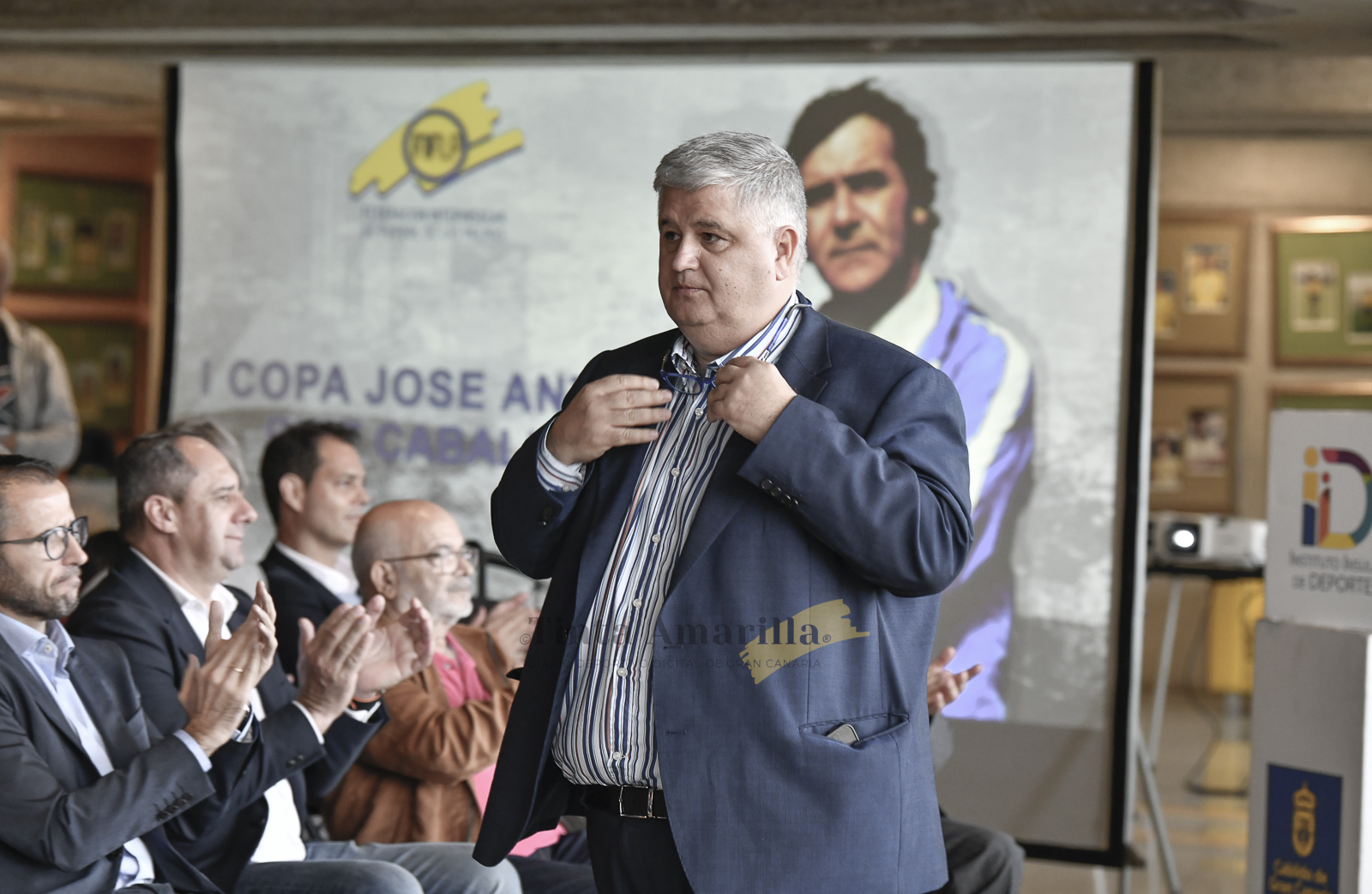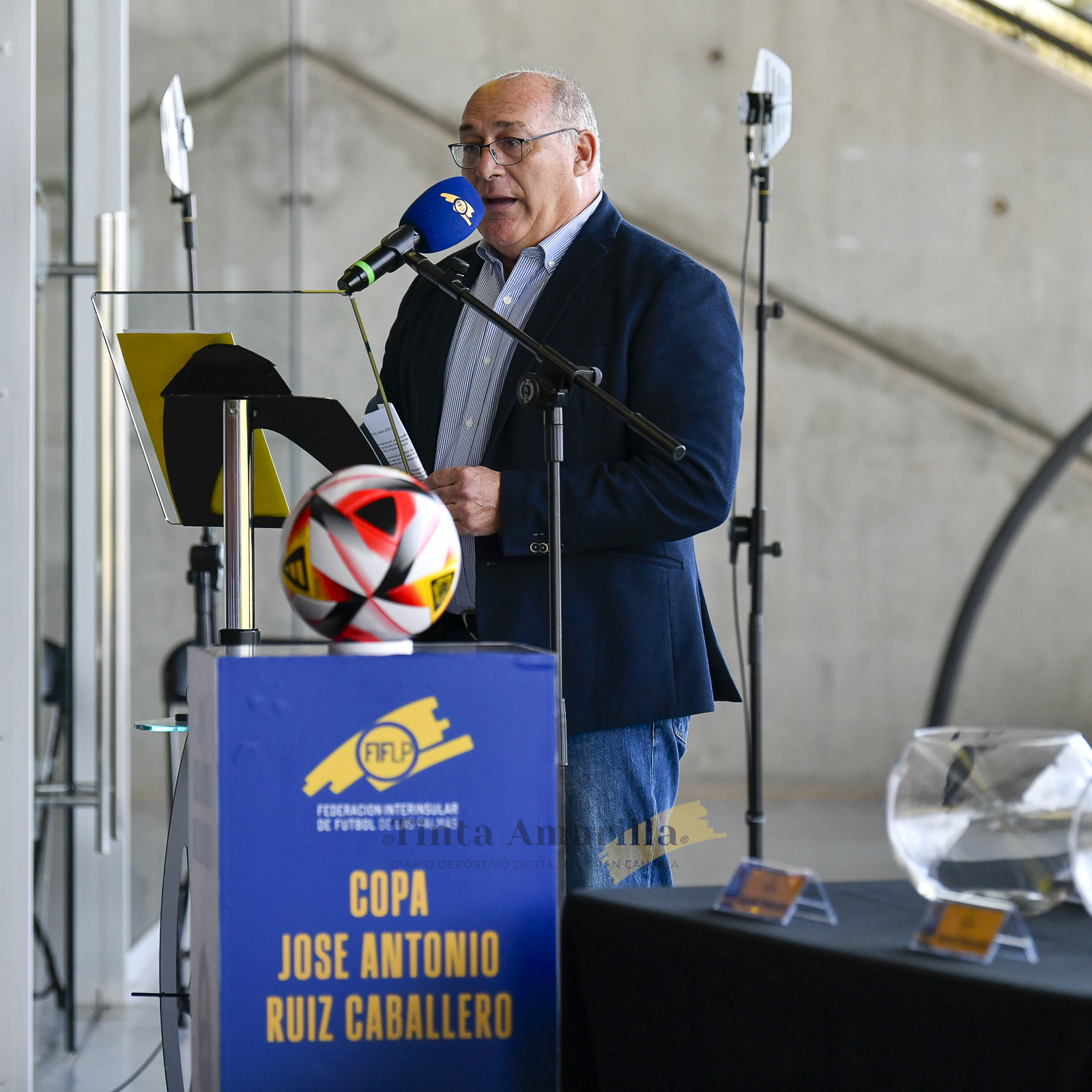 La primera edición de la Copa José Antonio Ruiz Caballero vio este miércoles la luz en el antepalco del Estadio de Gran Canaria. El acto convocado por la Federación Interinsular de Fútbol de Las Palmas se convirtió en un homenaje a un hombre que es “leyenda del fútbol canario”, con la intención de convertirse en un puente de relaciones deportivas bajo el espíritu conciliador que regó en vida.