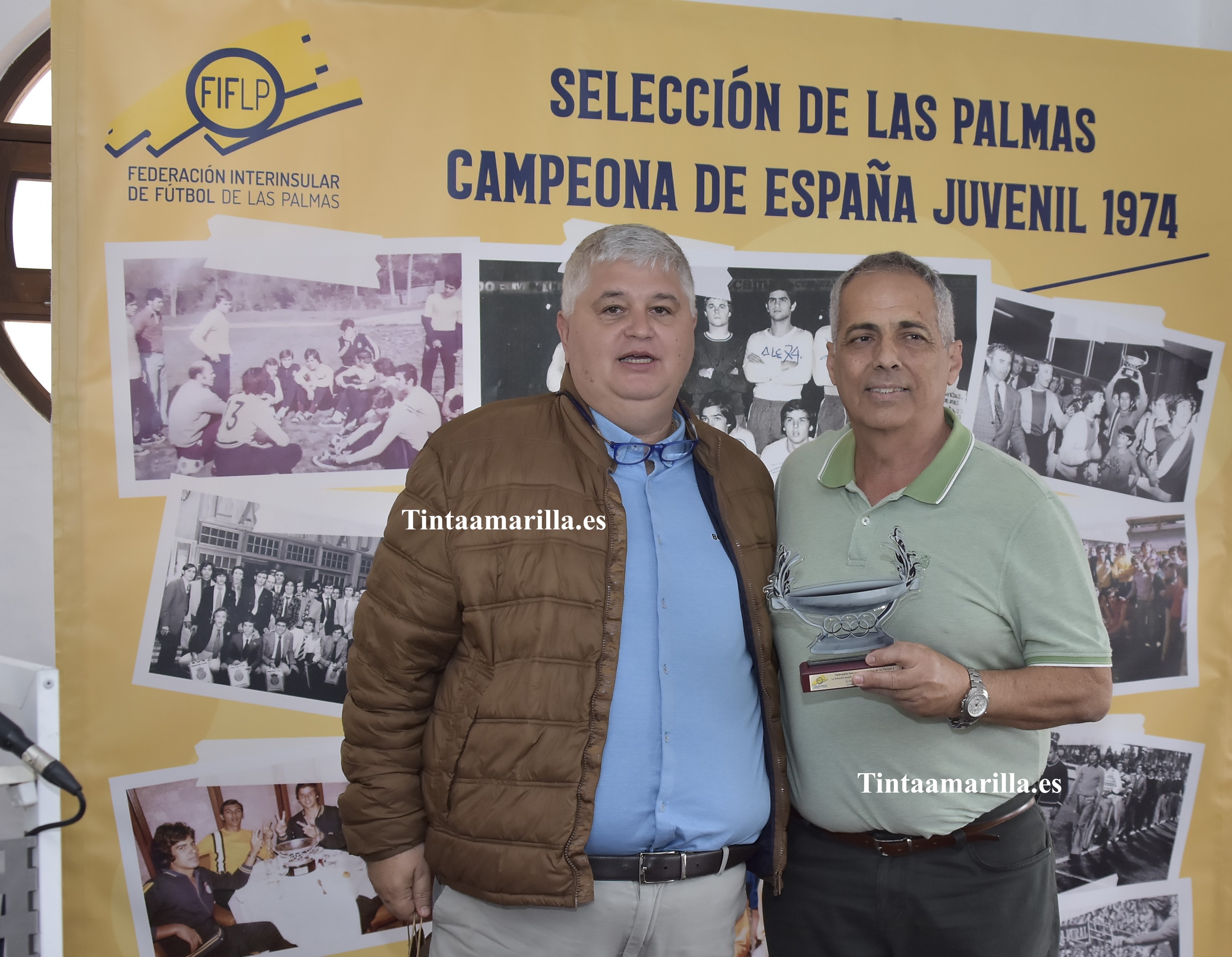 El presidente de la FILFP, Juanjo Arencibia,cerró el turno de los discursos con múltiples agradecimientos a los gestores de este homenaje y a sus personajes. Tuvo palabras de recuerdo para Juan Oramas, diablillo amarillo del 62 fallecido este viernes en la capital grancanaria. Y entre sus subrayados, brindó por haber conocido al legendario tesorero de la FIFLP Joaquín Espinosa, presente en el evento como superviviente de aquella junta directiva federativa de la época.