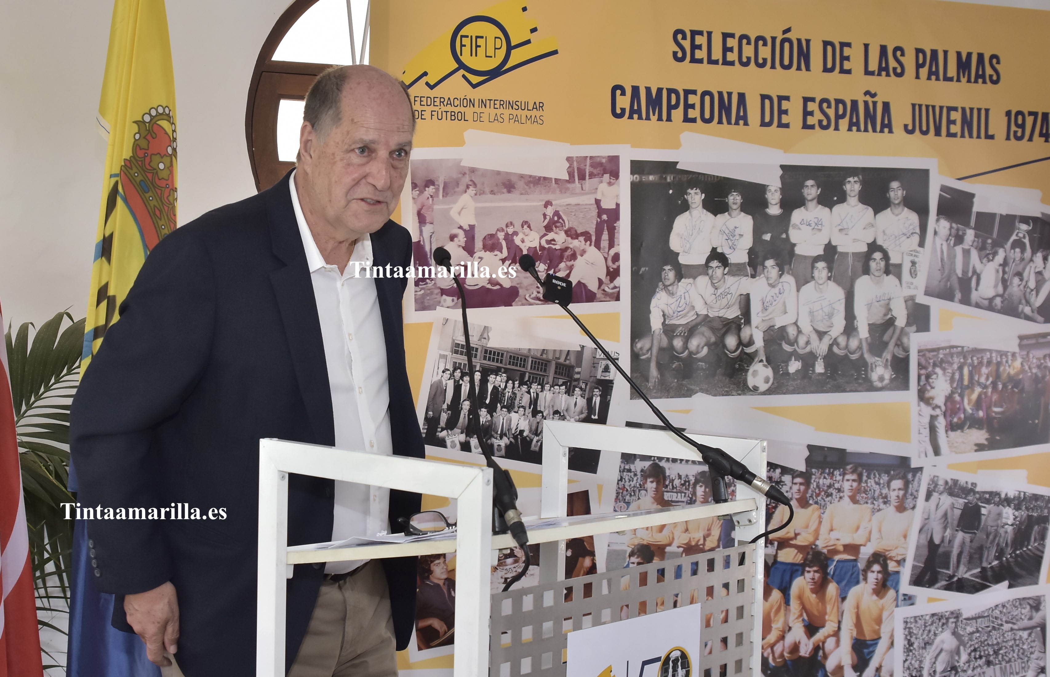 Noda se encargó de poner la letra a la reunión, con la elaboración además de una revista retrospectiva de la hazaña deportiva. Valoró el logro de los 19 futbolistas que utilizó el recordado técnico Estaban Betancor -representando en el acto por su hermano Ángel-. Porque “Esteban tuvo la valentía enorme de combinar una plantilla en la que se conjugaba la juventud y la veteranía. Tenía jóvenes jugadores, con apenas 15 o 16 años como Artiles o Fernando Castellano, mientras utilizaba también a jugadores juveniles curtidos con futbolistas adultos de los torneos regionales”.