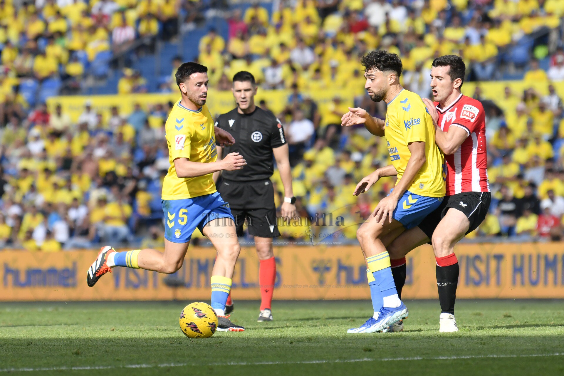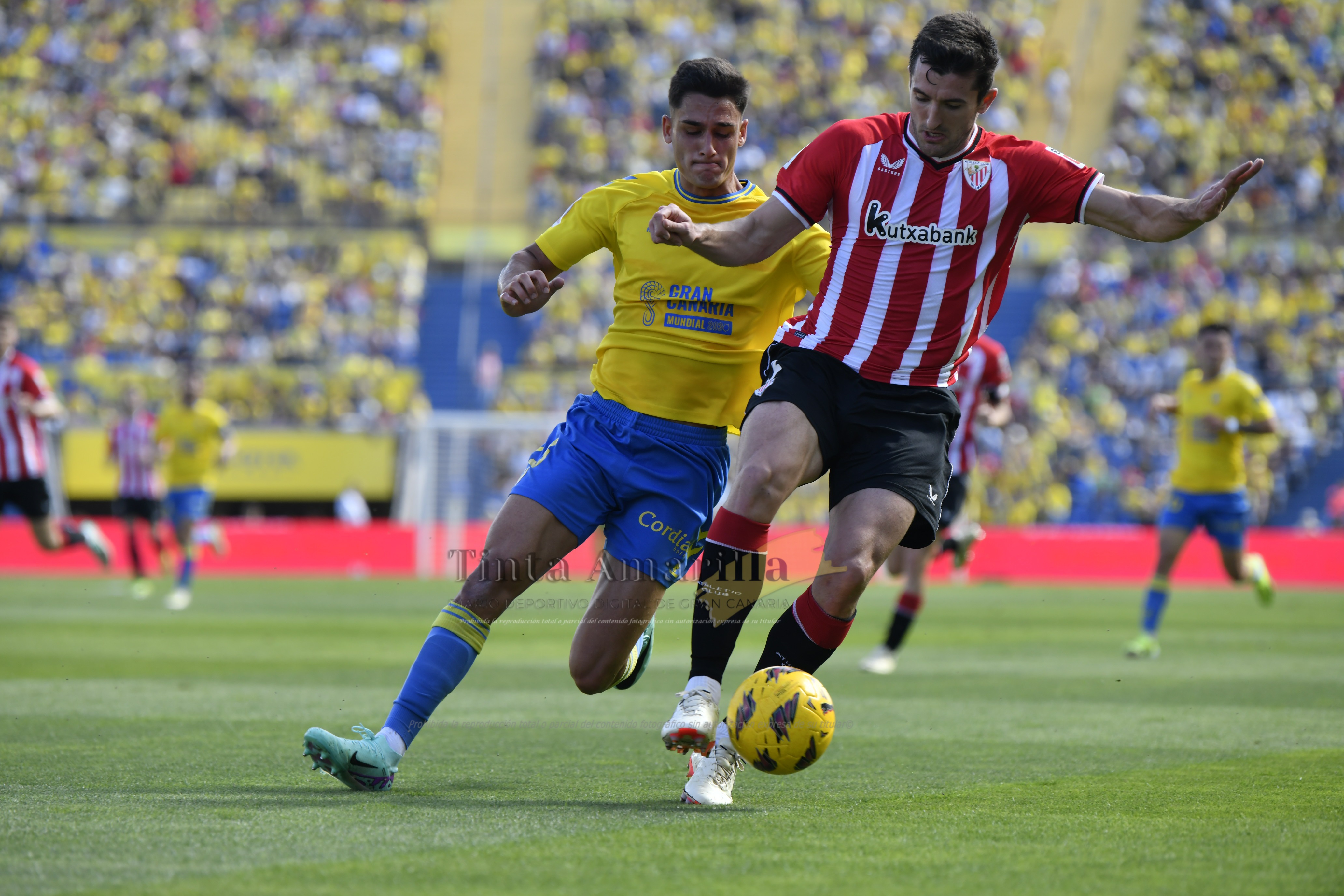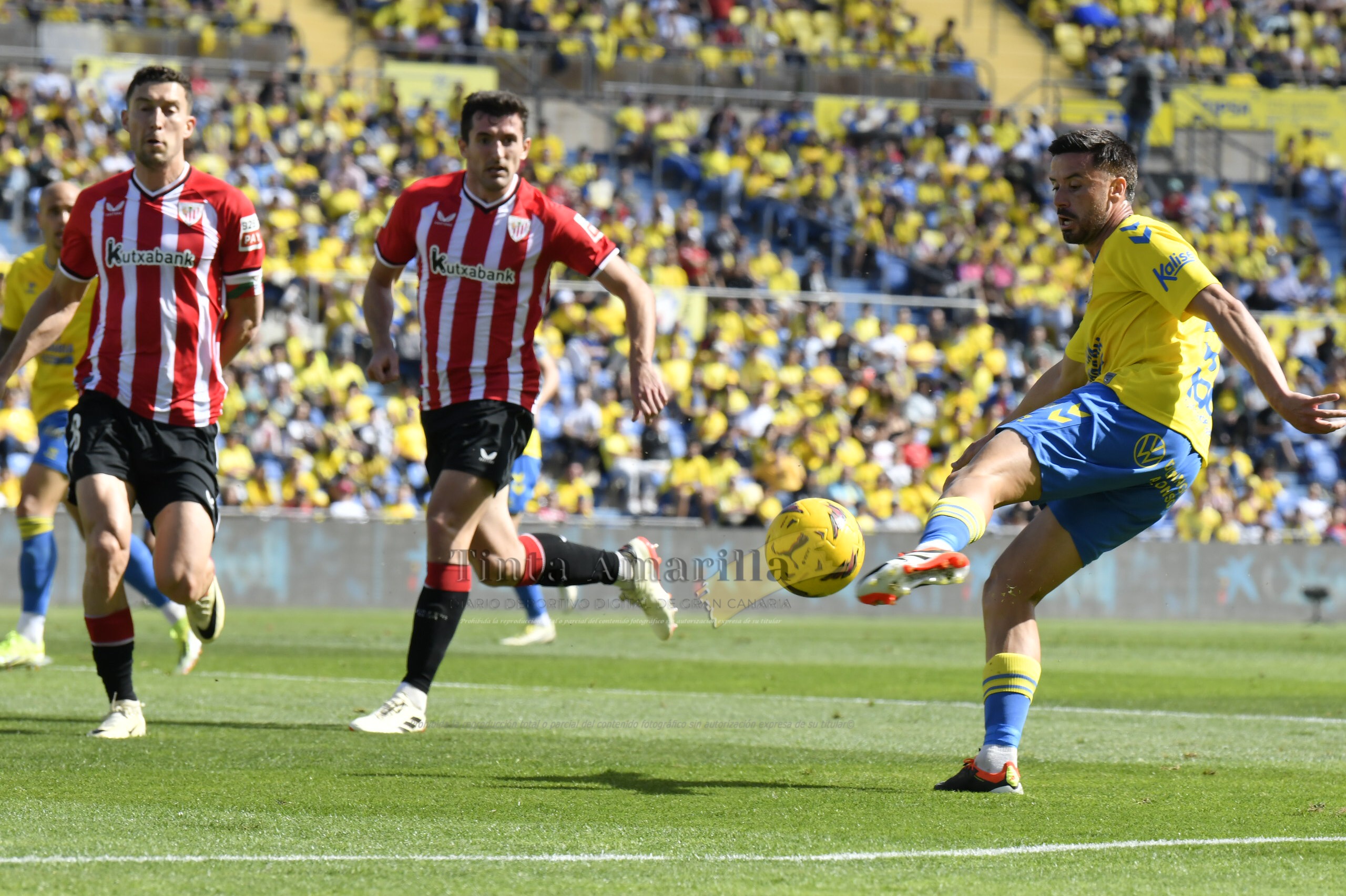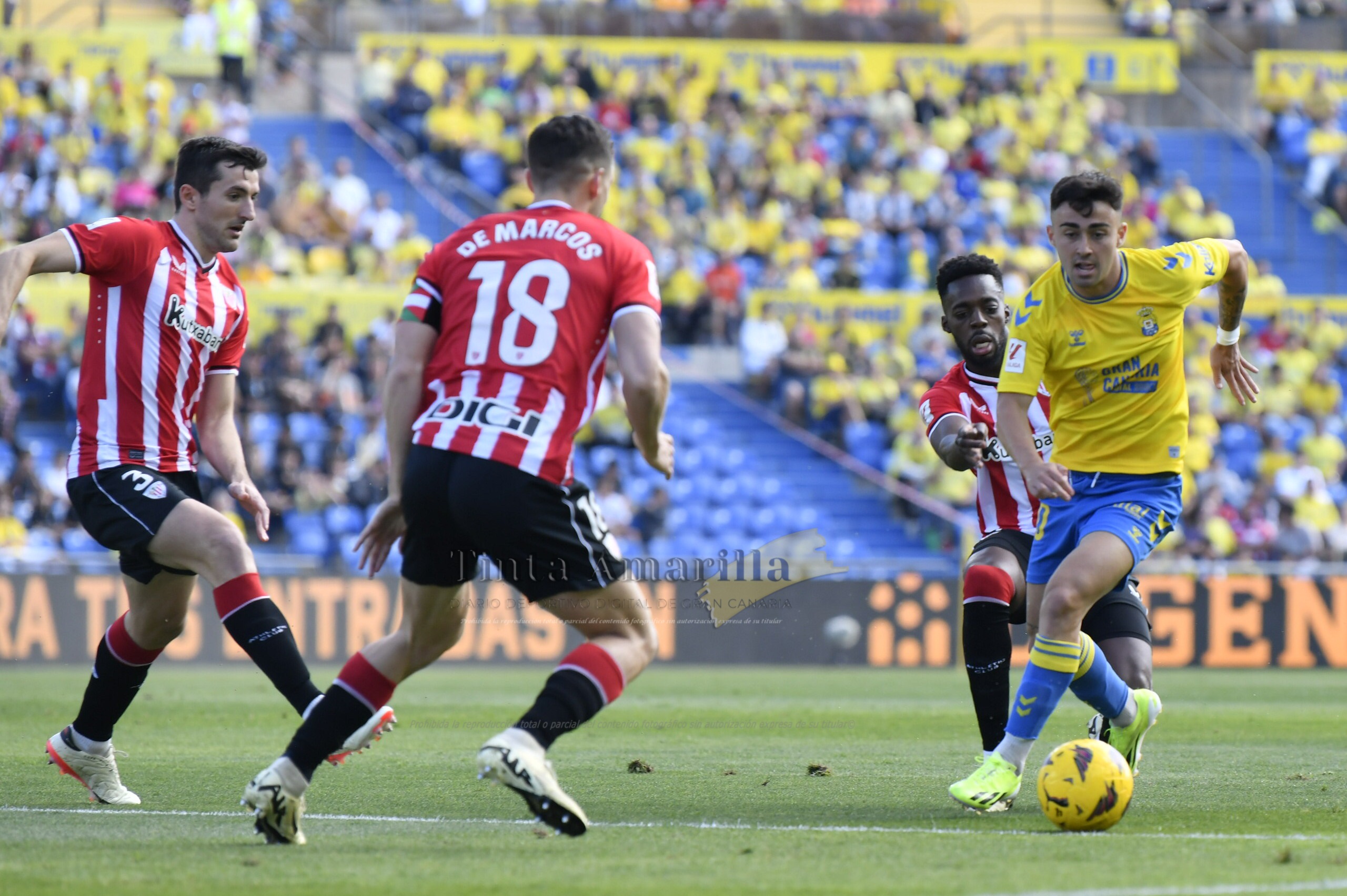 No era un día sencillo para los amarillos.Lo comprobaron desde el comienzo, con un Athletic que mostraba muchas piernas para la presión y abundantes piezas en campo local. Las Palmas pretendía mover rápido el balón, organizando un triángulo en el centro del campo con la novedad de Campaña, junto a Kirian y Javi Muñoz.