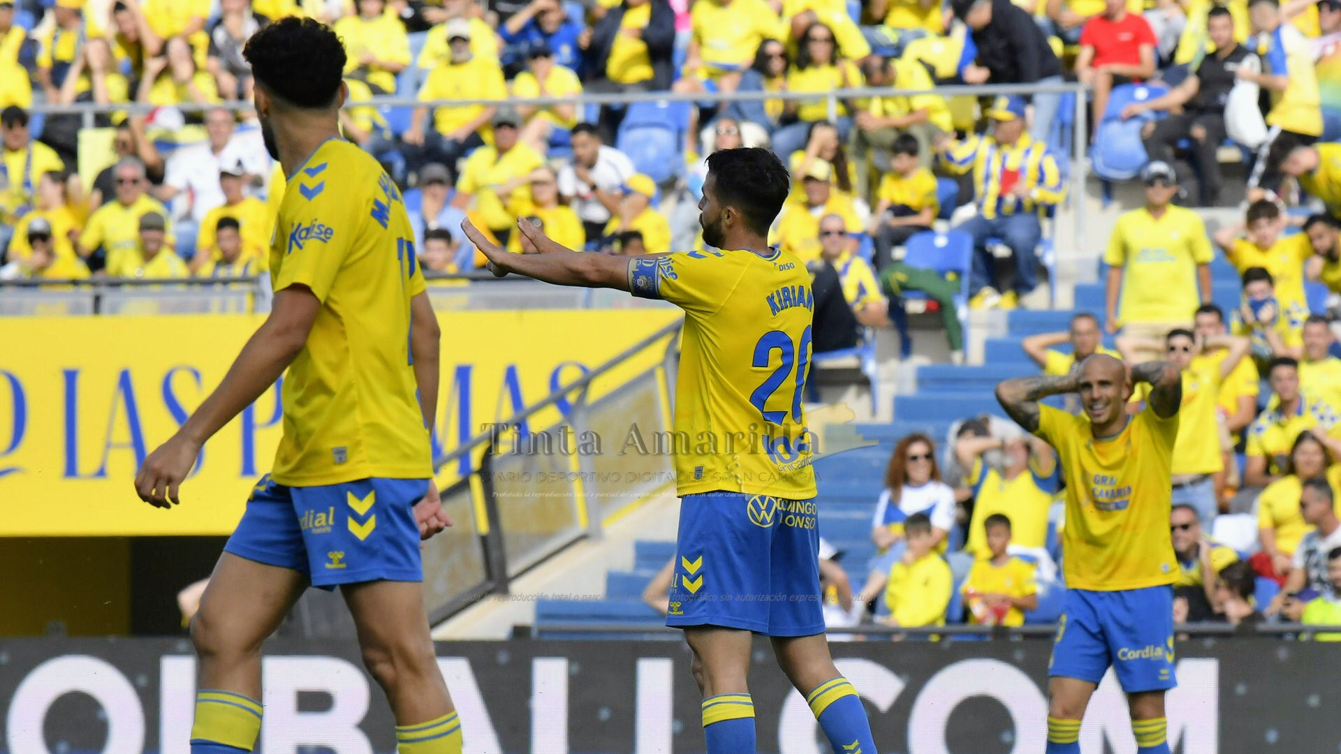 Pormenores: Partido de la 28ª jornada de Liga de Primera División, disputado en el Estadio de Gran Canaria (27.136 espectadores). Alberto Moleiro recibió su camiseta conmemorativa con el número 100, la cantidad de partidos oficiales que ya ha superado.