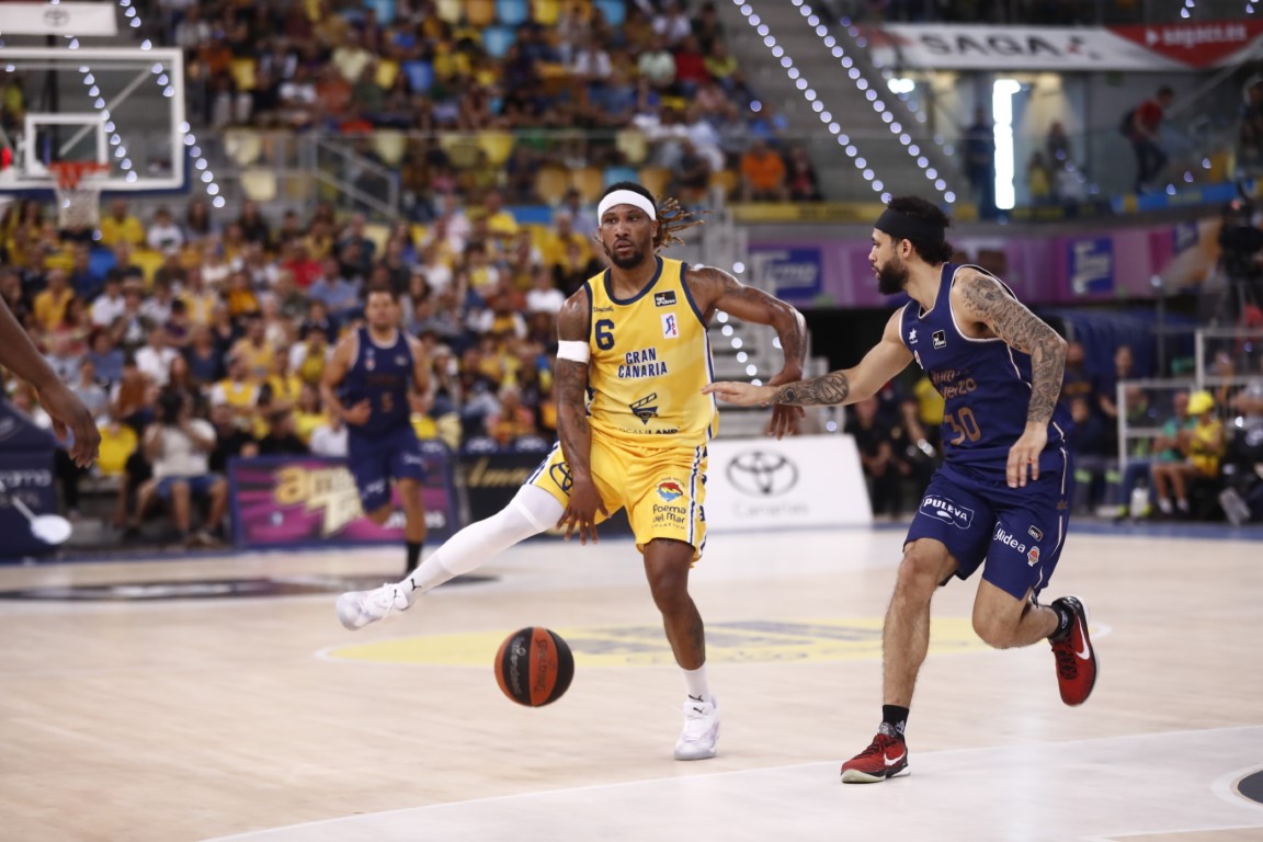 Con un comienzo desenfrenado, 10-7, el Gran Canaria perdió la puntería en las rotaciones y el Pamesa, con las ideas más claras metía presión hasta ponerse por delante en el marcador 17-24 con parcial 0-15 en tres minutos. Lentos en ataques y despistados en defensa, los amarillos desesperaban a su preparador, quién no encontraba ninguna solución a sus espaldas. El Valencia se exigía un apretón de tuerca en su defensa y agobiados, los de Lakovic apenas veían el aro de cara. La sangría era imparable y con un único punto anotado en los últimos cuatro minutos y medio del primer parcial el Granca despedía ese cuarto con un 18-26 que presentaba un panorama desangelado.