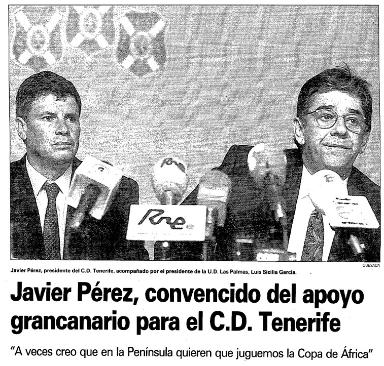 El mensaje del CD Tenerife caló en la afición grancanaria. Javier Pérez había recordado que “nuestra tierra es la más fraccionada del país; fraccionada por el mar”. Pidió “estar juntos en estos momentos”, después de considerar que “una vez más los canarios hemos sido injustamente tratados por los dirigentes del fútbol nacional”. “Algunos me dicen que ése es el alto coste de la insularidad, pero yo le llamo godismo”, apuntó el presidente blanquiazul. “A veces creo que en la Península quieren que juguemos en África”, llegó a afirmar con rotundidad.