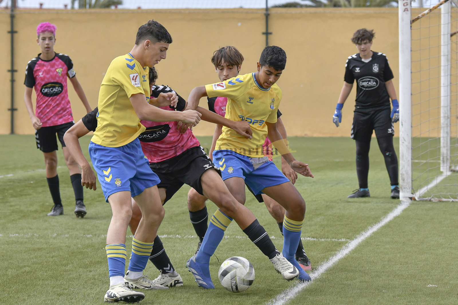 La UD Las Palmas formó de inicio con Aitor Pérez, Abraham, Lucas, Adrián, Yubay, Javi, Gabri, Remy, Ismael, Fran y Alex. Banquillo: Aitor Guti (p), Luis, Darek, Samu, Fran, Héctor e Isaac.