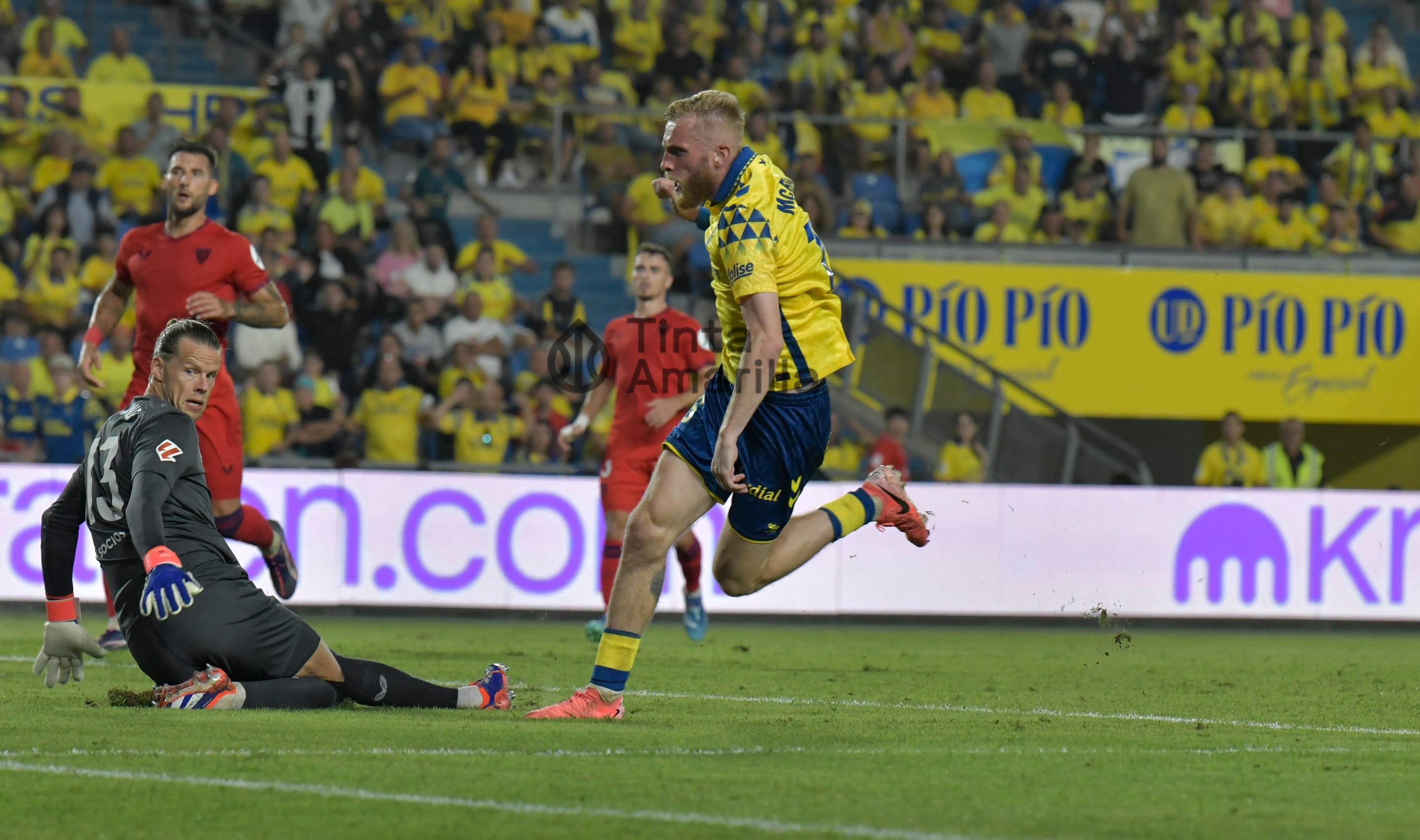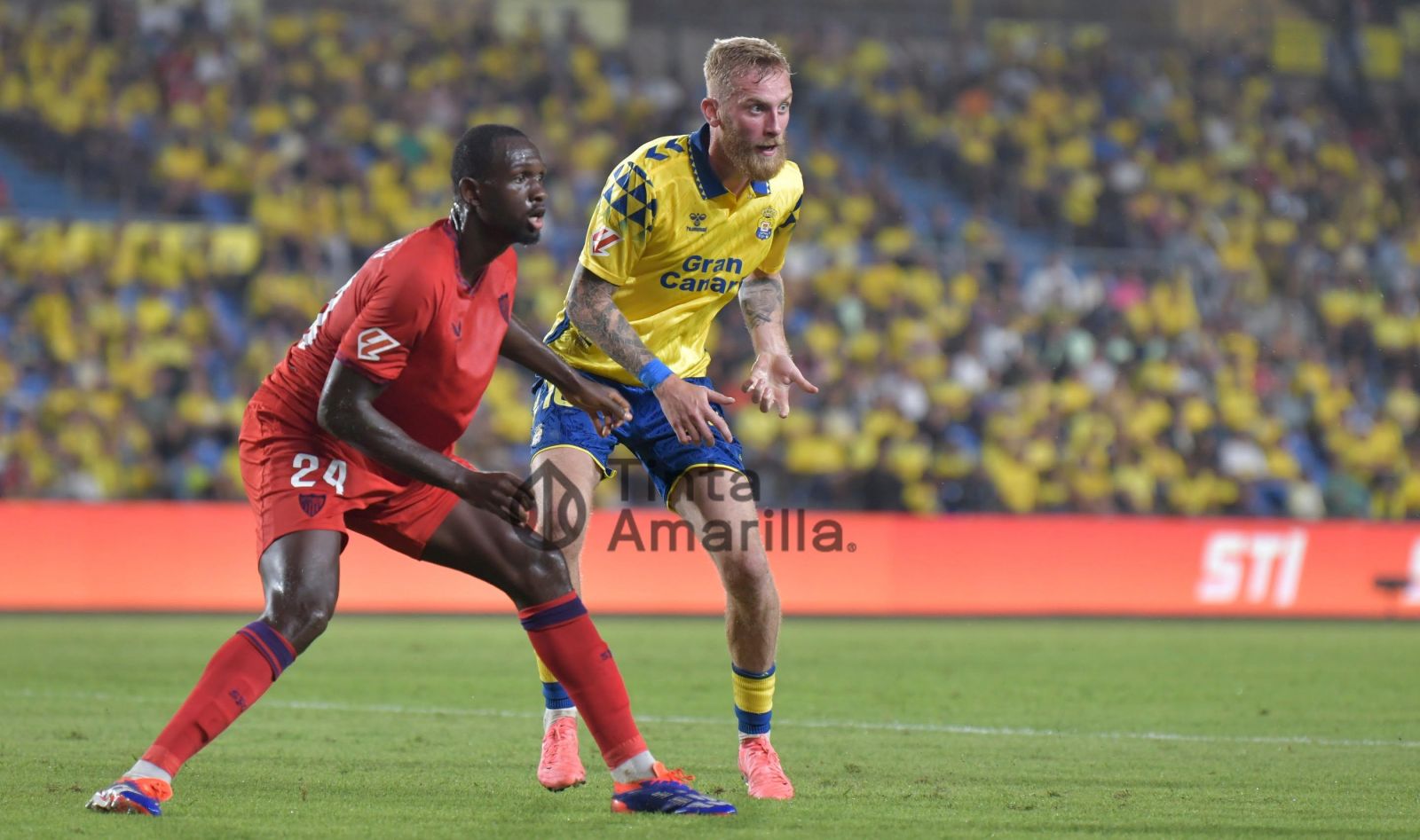 Y el escocés, en su presentación como jugador amarillo en el Estadio de Gran Canaria, logró arrancar la ovación y la admiración de aquellos que van a empujarlo con su aliento en el año de su estreno en la Liga. McBurnie fue un auténtico ‘dolor de muelas’ para los defensores del Sevilla, que no tuvieron un instante de relax en la noche del viernes. En sus 86 minutos dio trabajo abundante a los centrales Nianzou -especialmente- y Gudelj, con una producción propia de un disparo al poste y forzar el tanto del 1-1 en la primera parte. Porque si el sevillista Nianzou no bate a su compañero Nyland, lo habría hecho el delantero debutante en la UD.
