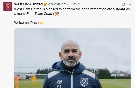 El histórico West Ham United ha confirmado este jueves a Paco Jémez como primer miembro del cuerpo técnico del club, para ponerse a las órdenes de Nuno Espíritu Santo. Dice el club inglés que el español aportará experiencia y conocimiento al cuerpo técnico de Nuno Espírito Santo, habiendo dirigido más de 500 partidos durante una carrera como entrenador que abarca casi dos décadas.