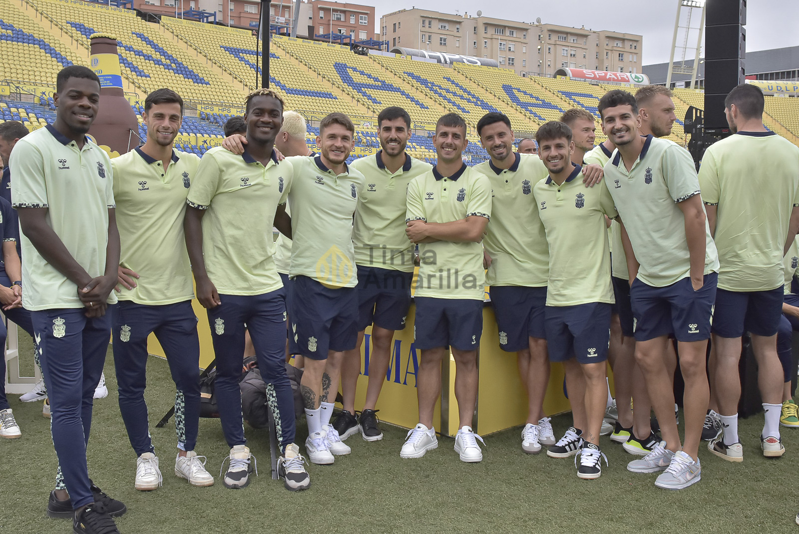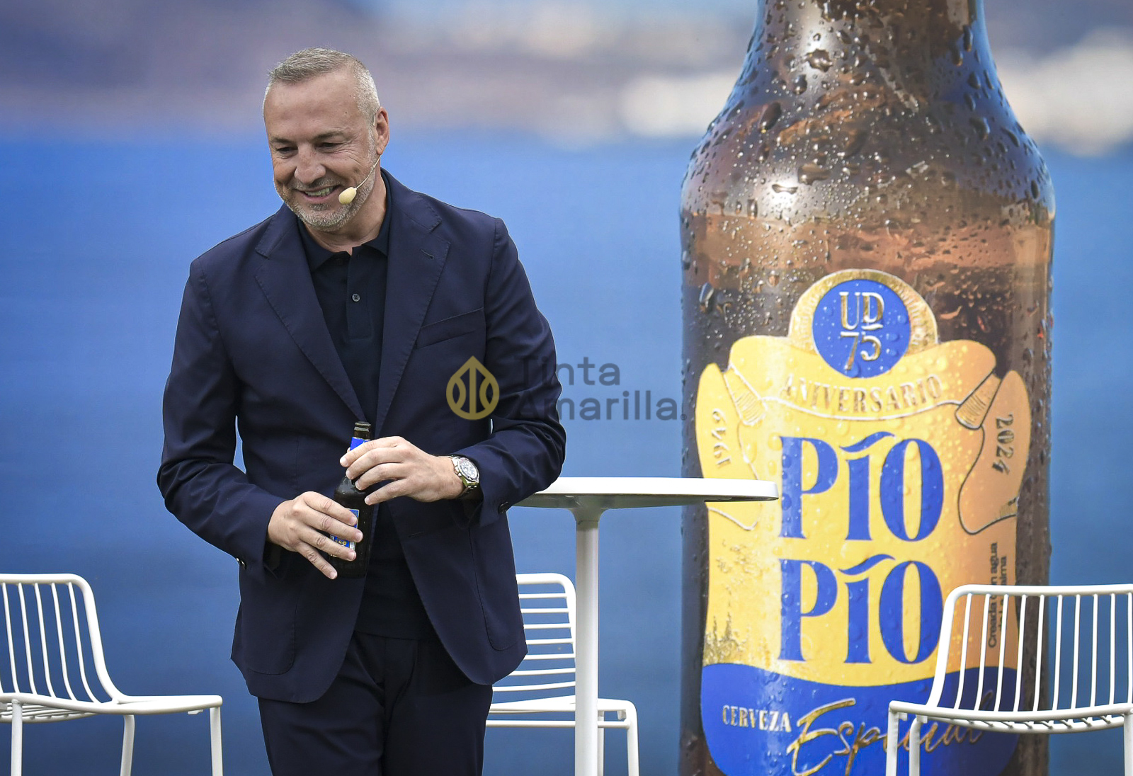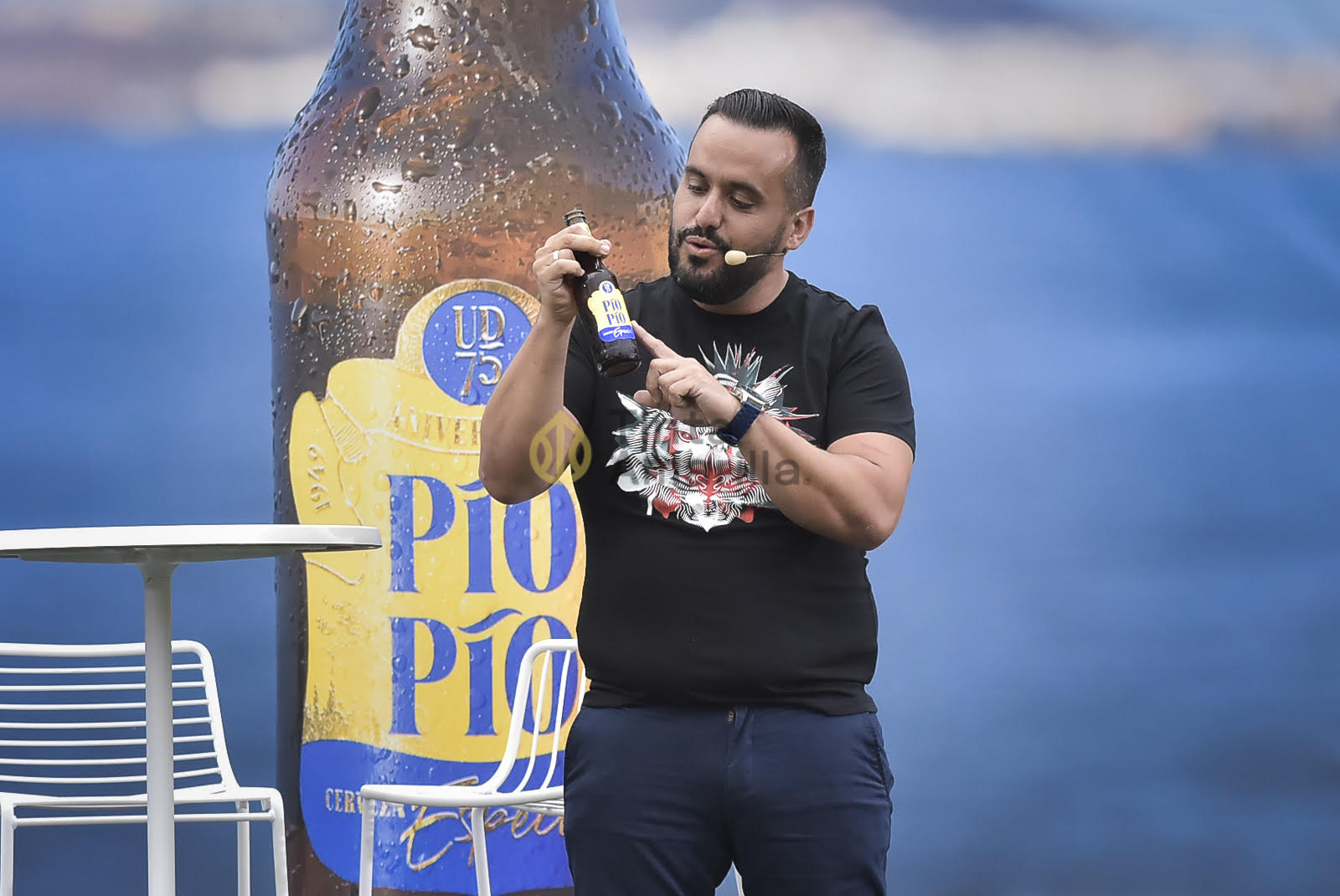 La presentación de la Cerveza Pío Pío tuvo lugar este miércoles en el Estadio de Gran Canaria. Será uno de los mensajes publicitarios (en la versión sin) que lucirán en sus camisetas los futbolistas profesionales de la Unión Deportiva Las Palmas.