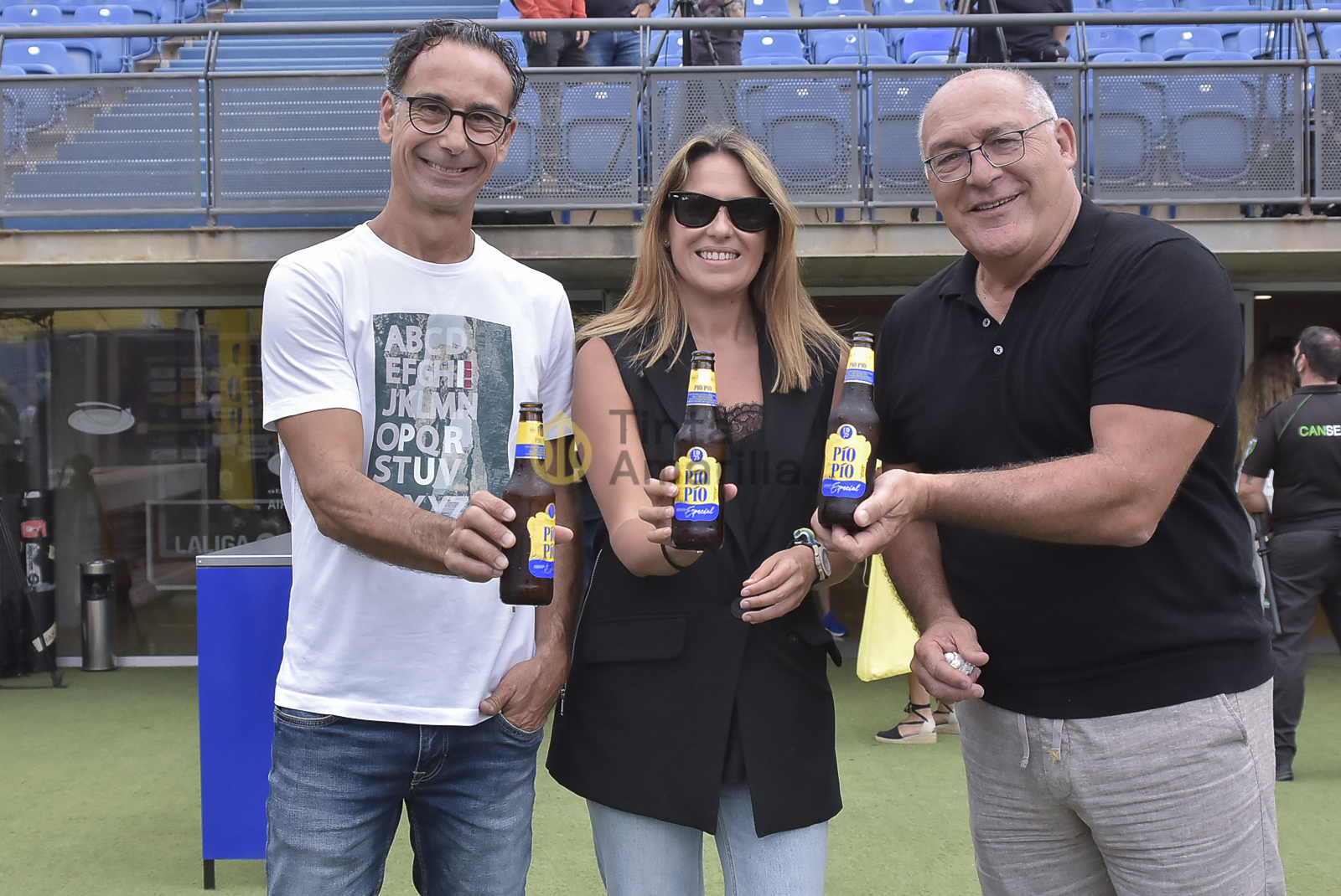 La presentación de la Cerveza Pío Pío tuvo lugar este miércoles en el Estadio de Gran Canaria. Será uno de los mensajes publicitarios (en la versión sin) que lucirán en sus camisetas los futbolistas profesionales de la Unión Deportiva Las Palmas.