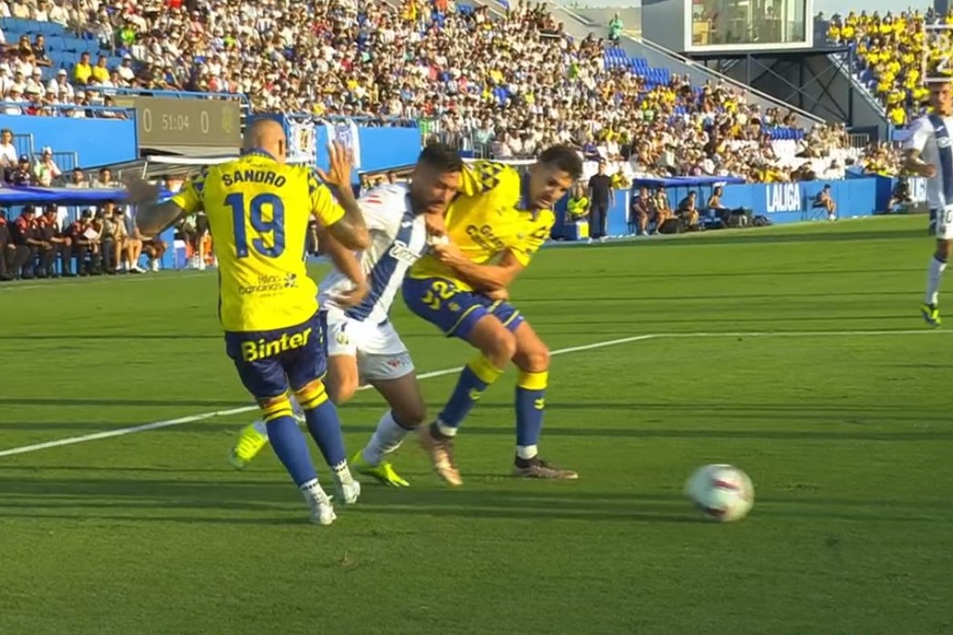 Sandro Ramírez explicó tras el partido que el “penalti se lo inventa” el colegiado. Su entrenador, Luis Carrión, prefiere analizar el por qué el Leganés firmó una jugada de riesgo en el área canaria. Lo cierto es que el colegiado De Burgos no cambió su decisión inicial -derribo de Óscar- ni tampoco alteró la opinión el asistente de VAR, Iglesias Villanueva.