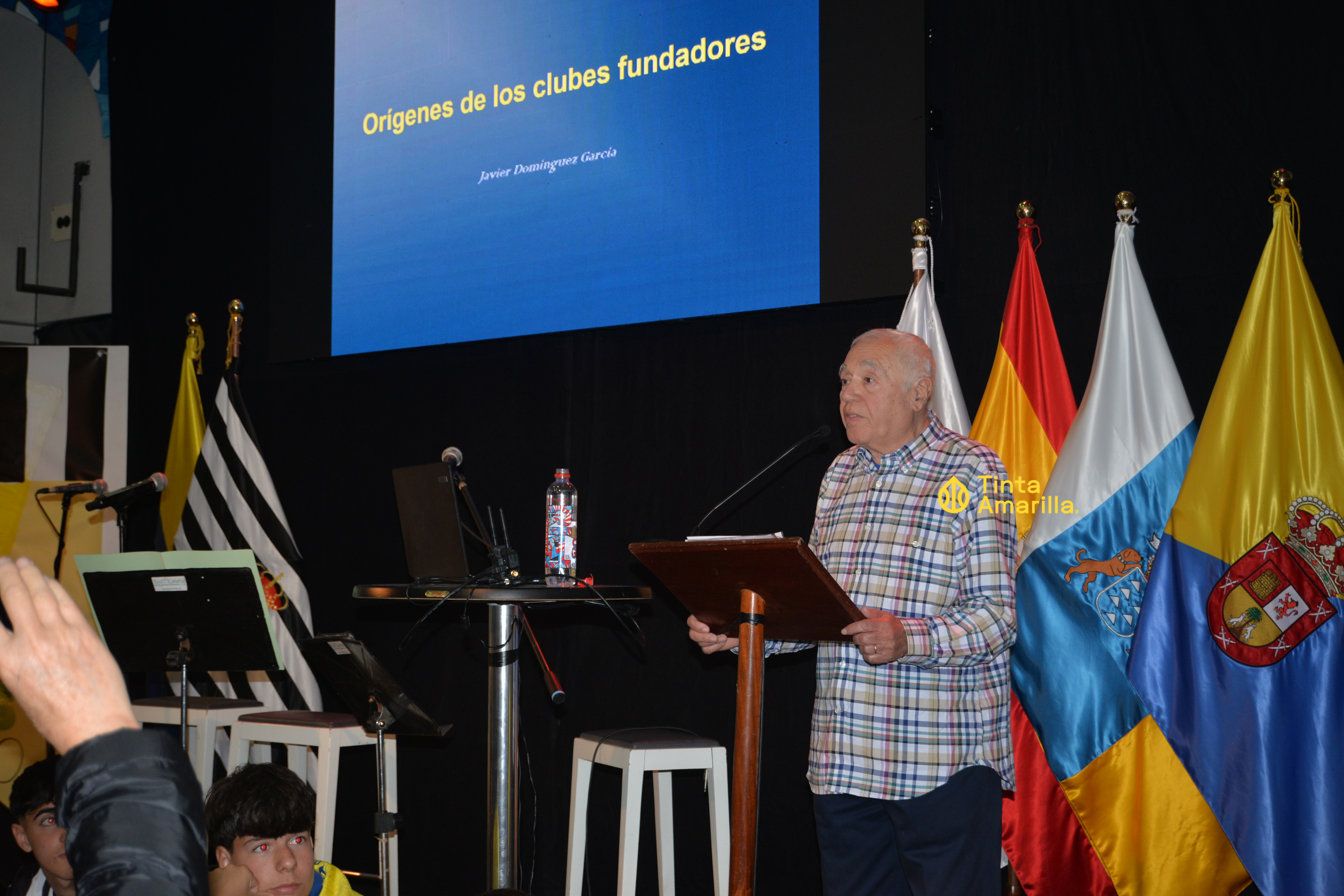 Los mensajes de ambos estaban asociados a los años previos al nacimiento de la Unión Deportiva Las Palmas. Domínguez repasó de manera exhaustiva la inmersión de Gran Canaria en “el deporte de la pelota”, como conocían al fútbol los pobladores de finales del siglo XIX y principios del XX. Recordó que los dos primeros clubes con deportistas nacidos en la isla fueron el Club Gimnástico y el Club Canaria. “Así empezó el fútbol en Canarias”, sentenció al recordar que la creación de la Federación en 1925 ordenó lo que estaba entonces en su germen.