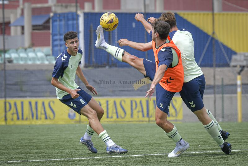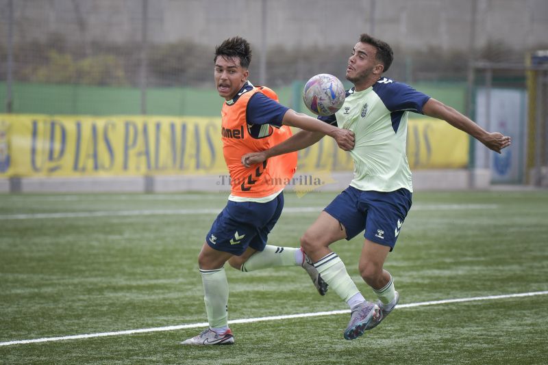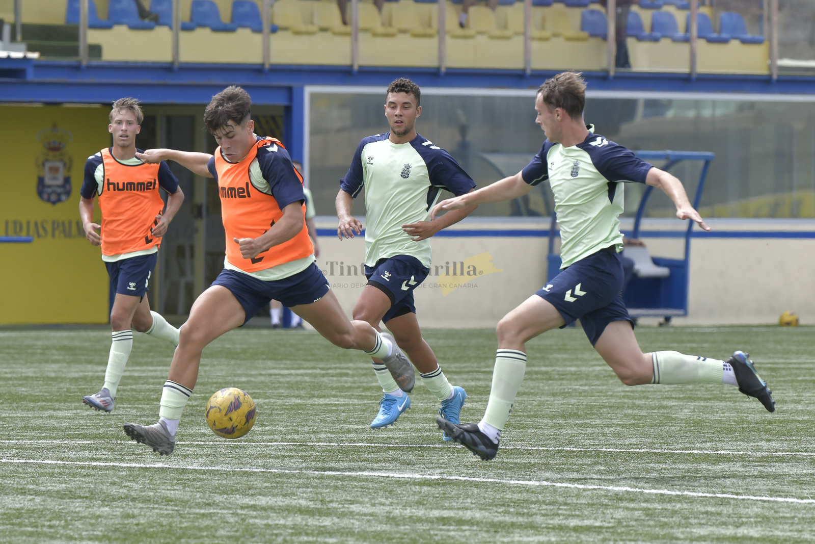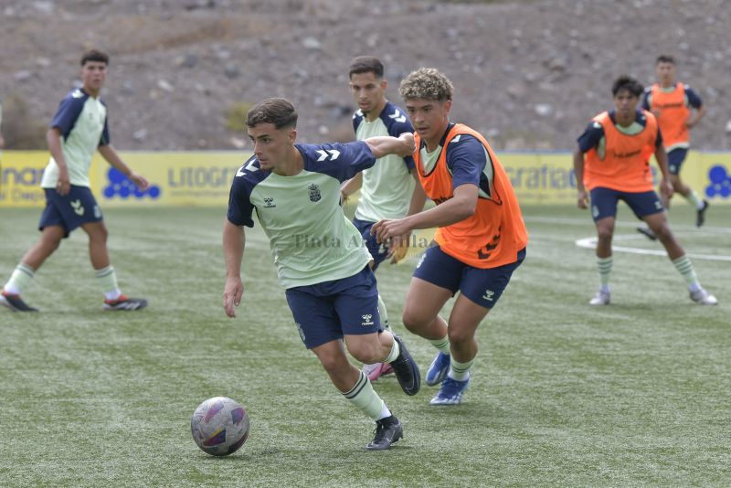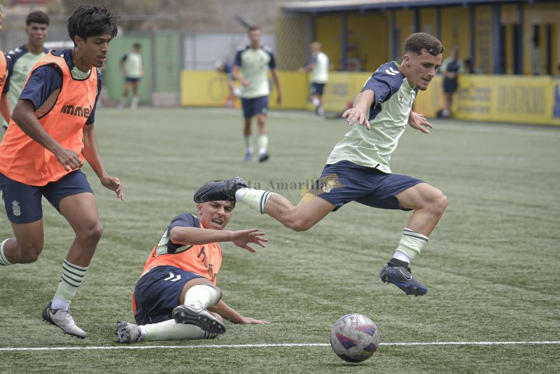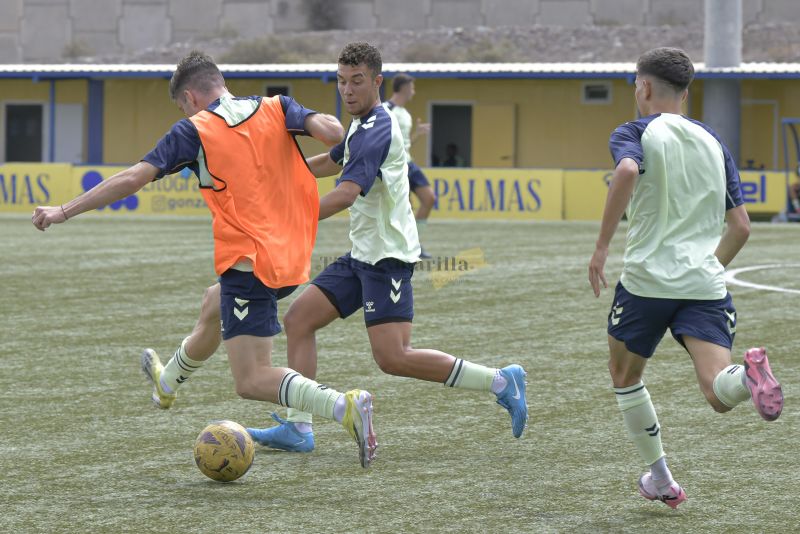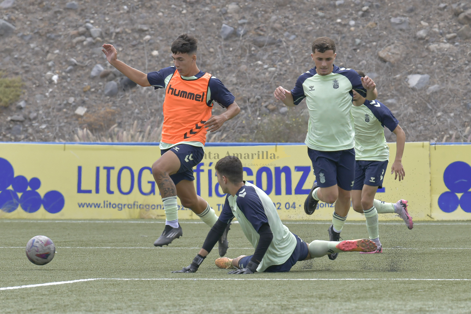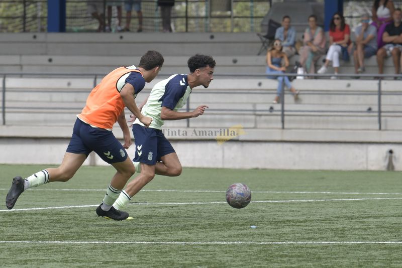 Las Palmas C y el conjunto División de Honor juvenil realizaron ese sábado un entrenamiento conjunto en el estadio Anexo, con un partidillo en el que se entremezclaron miembros de ambas formaciones.
