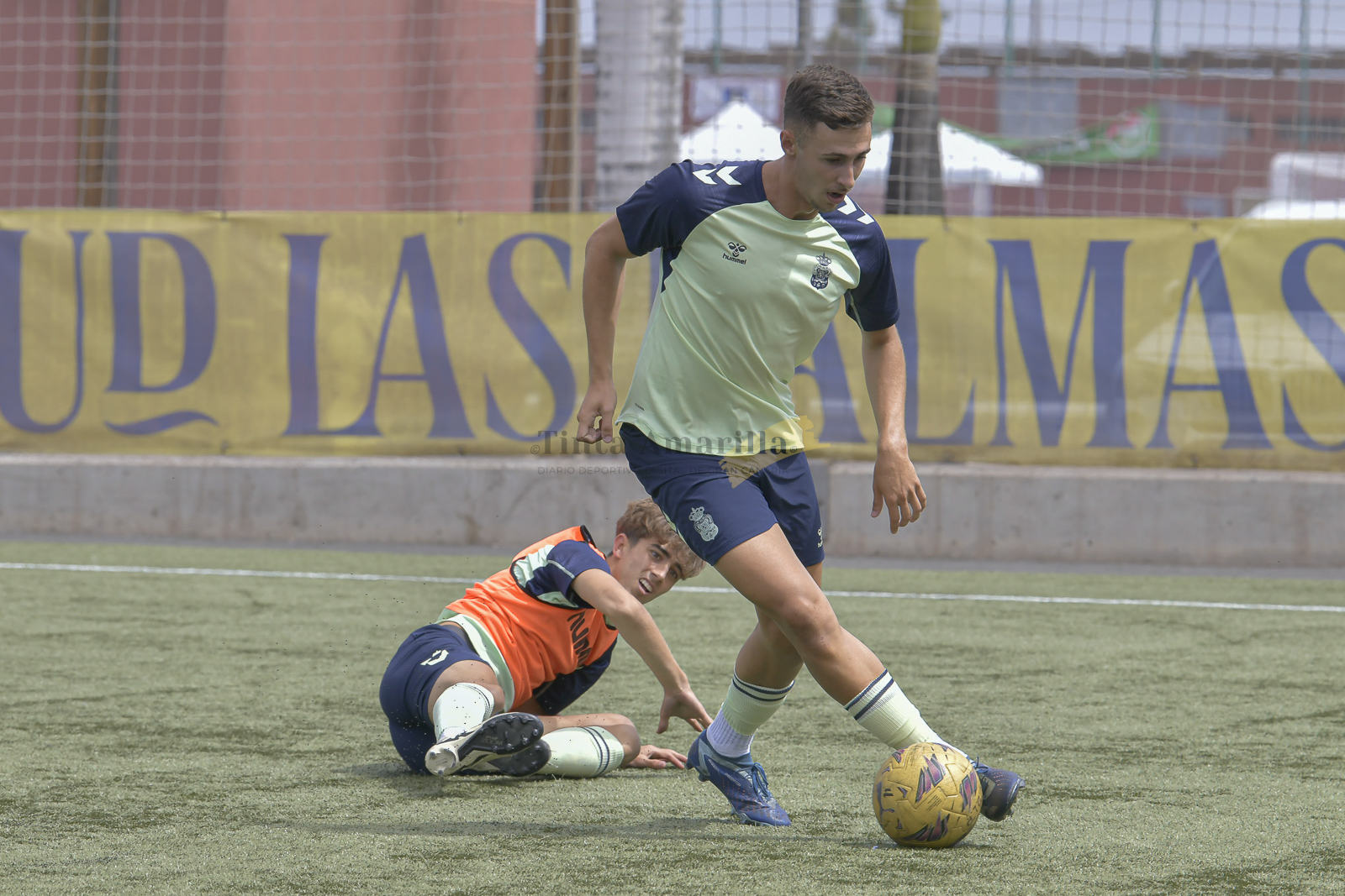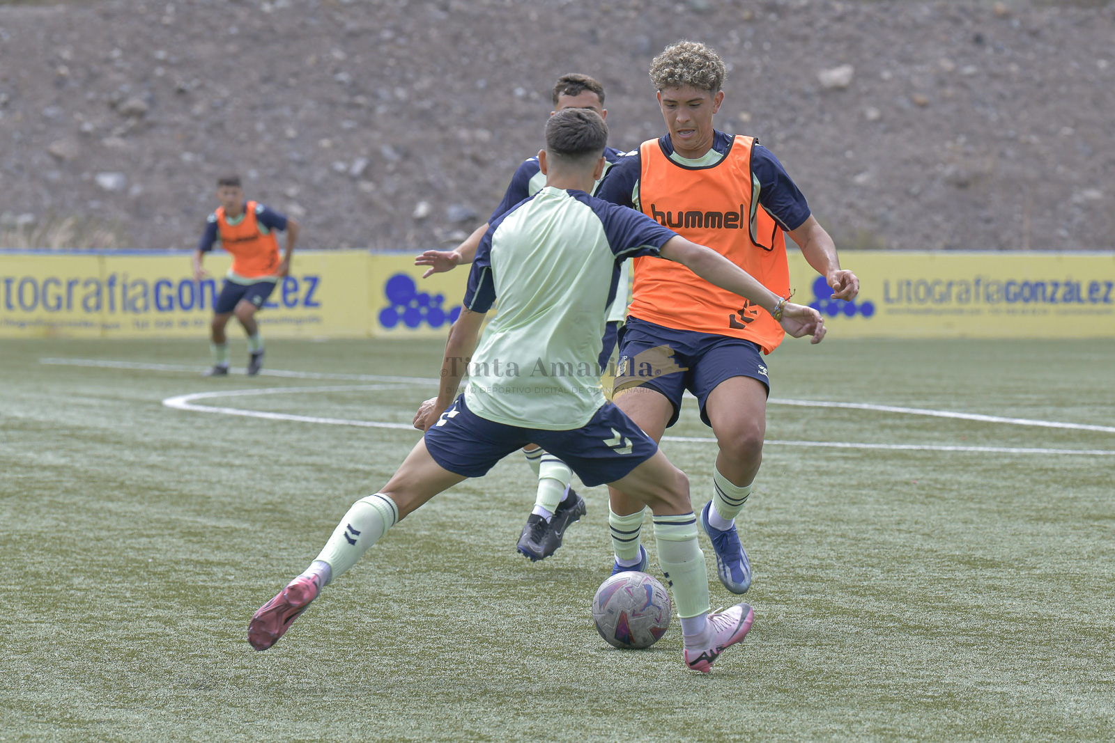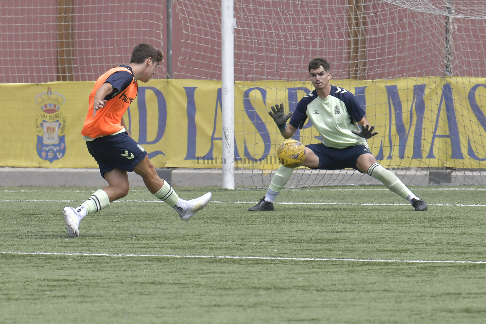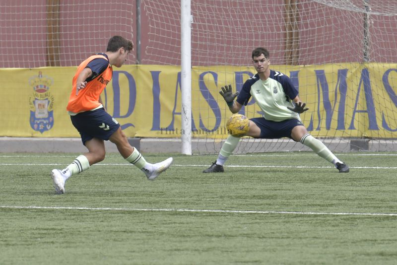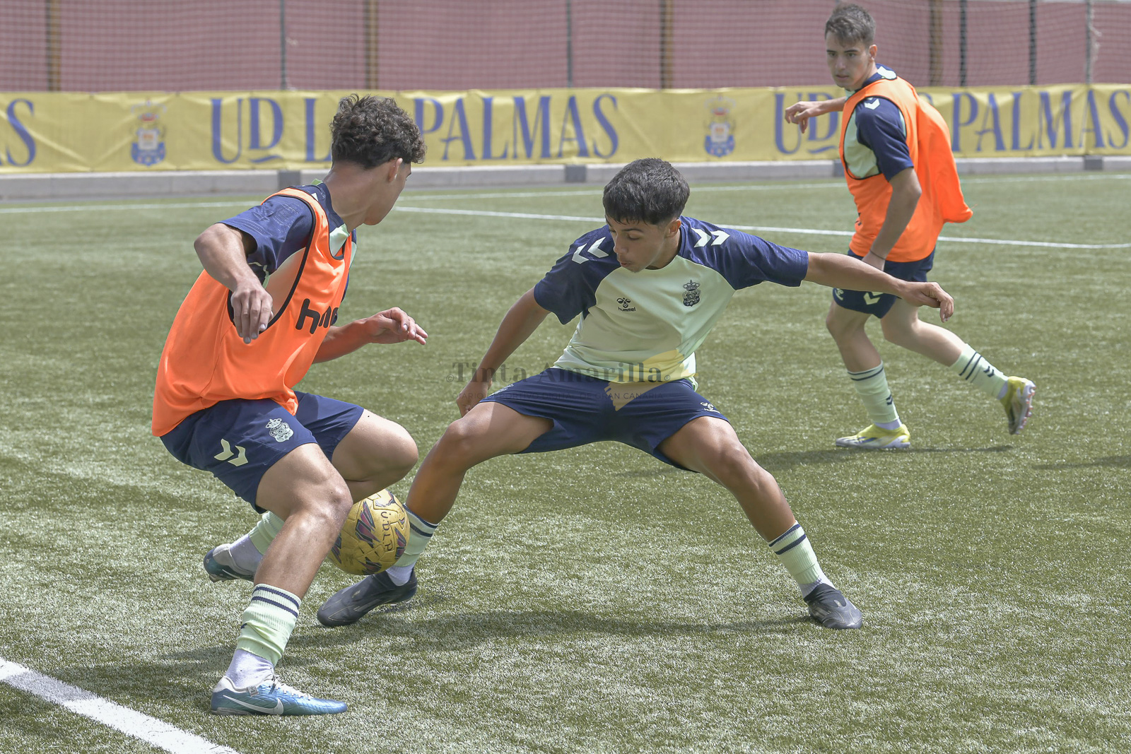 Las Palmas C y el conjunto División de Honor juvenil realizaron ese sábado un entrenamiento conjunto en el estadio Anexo, con un partidillo en el que se entremezclaron miembros de ambas formaciones.