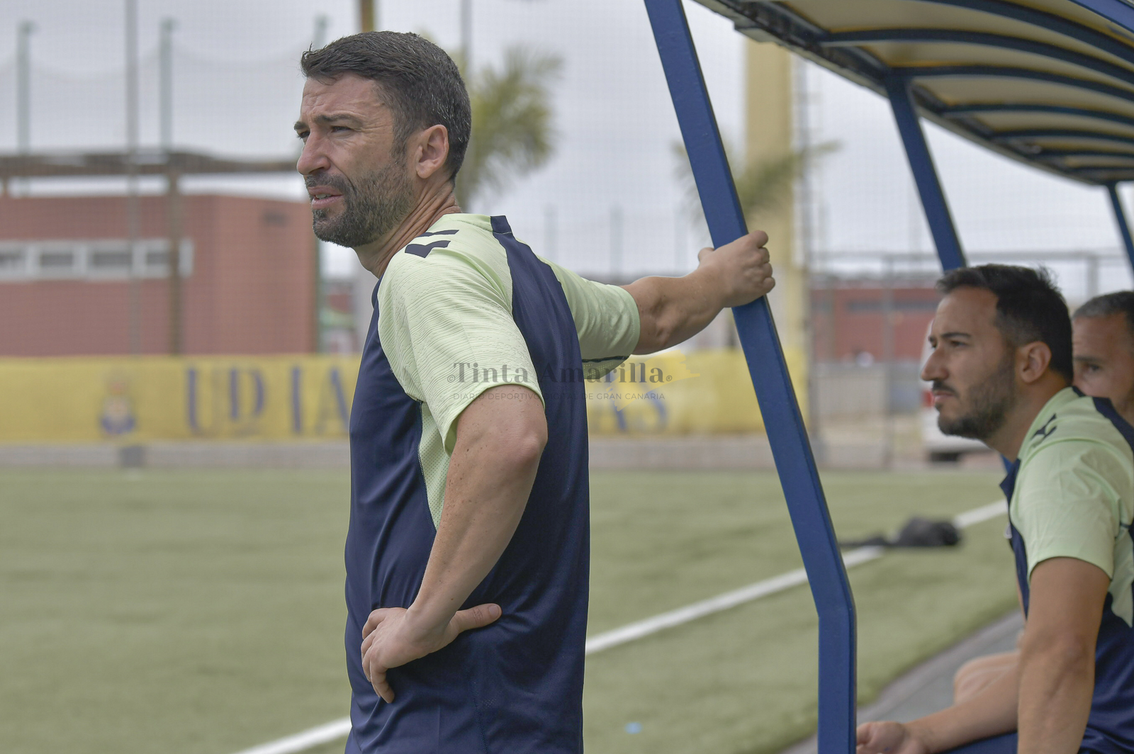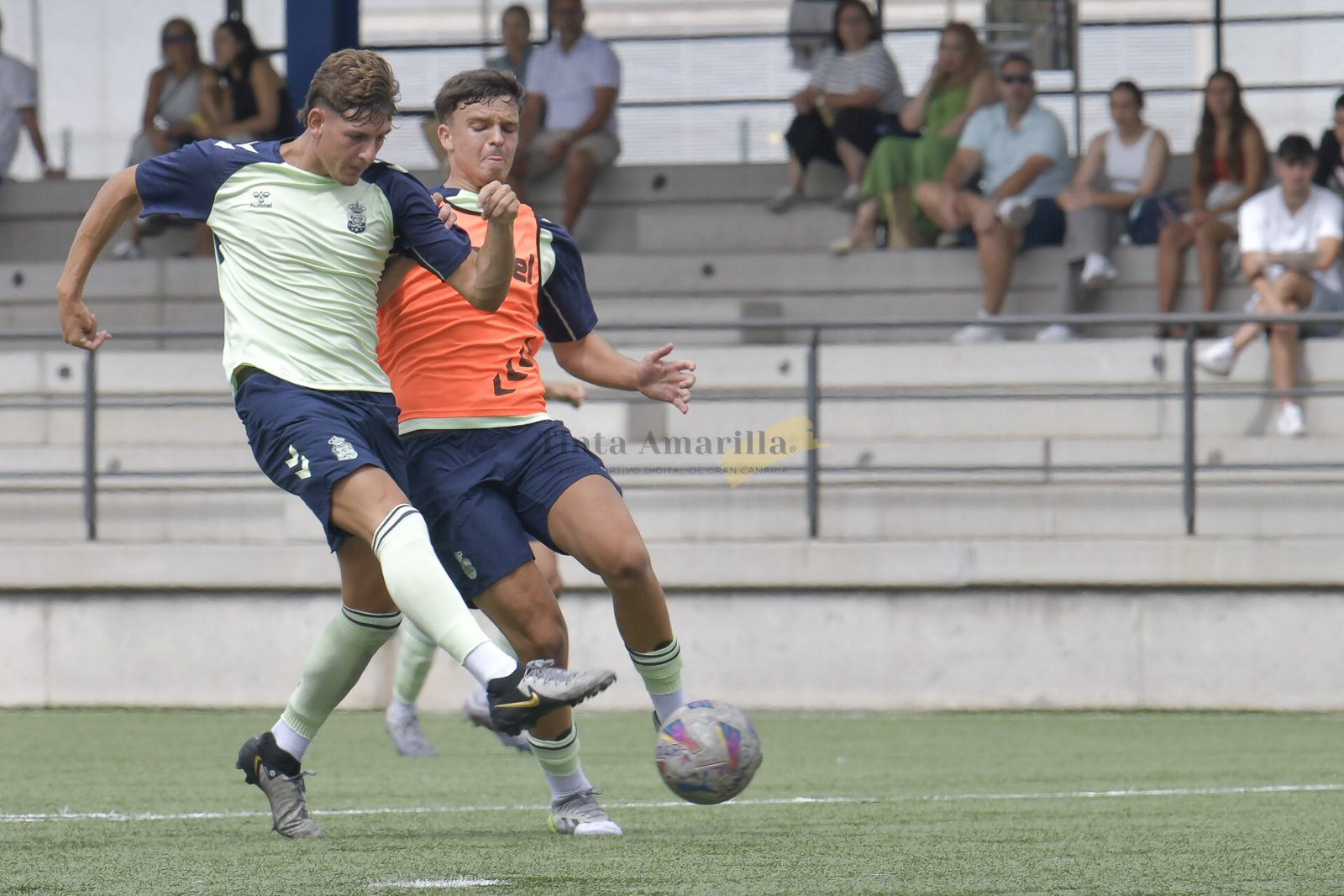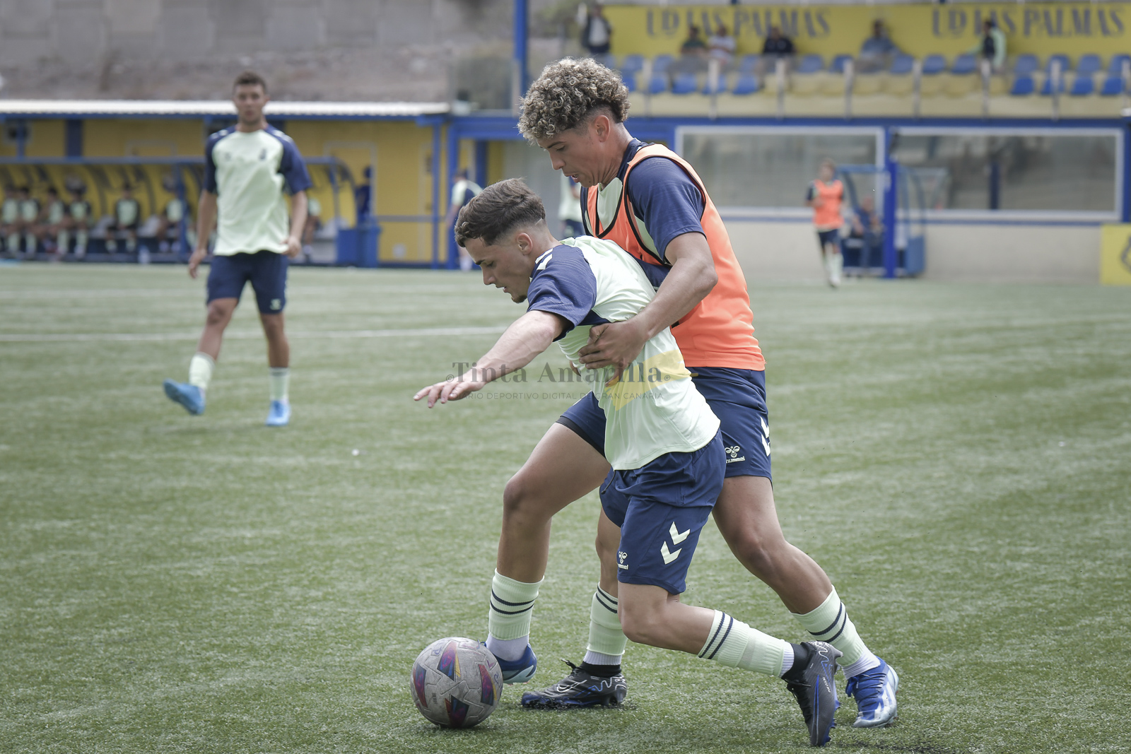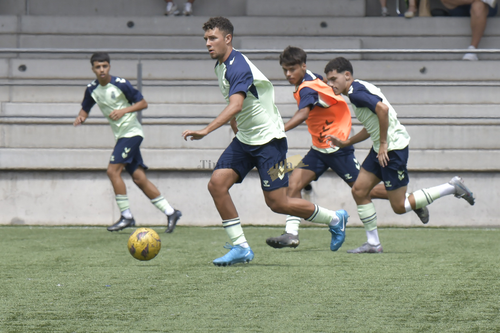 Las Palmas C y el conjunto División de Honor juvenil realizaron ese sábado un entrenamiento conjunto en el estadio Anexo, con un partidillo en el que se entremezclaron miembros de ambas formaciones.