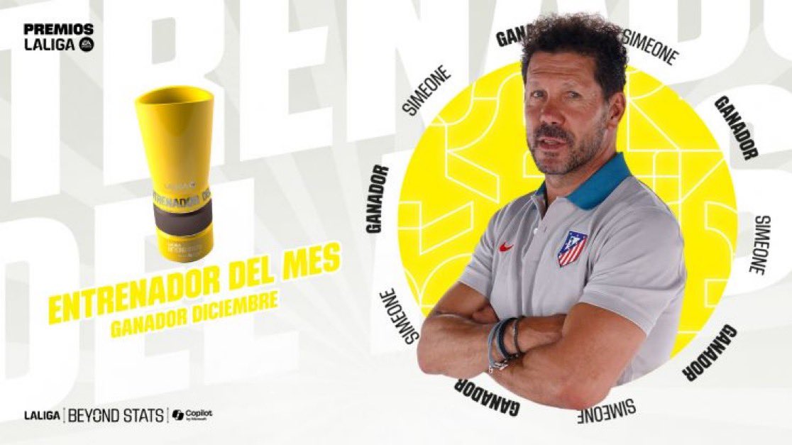 Diego Pablo Simeone, con un pleno de victorias, ha sido finalmente el ganador del premio a mejor técnico de diciembre de 2024, según ha comunicado la Liga Profesional.