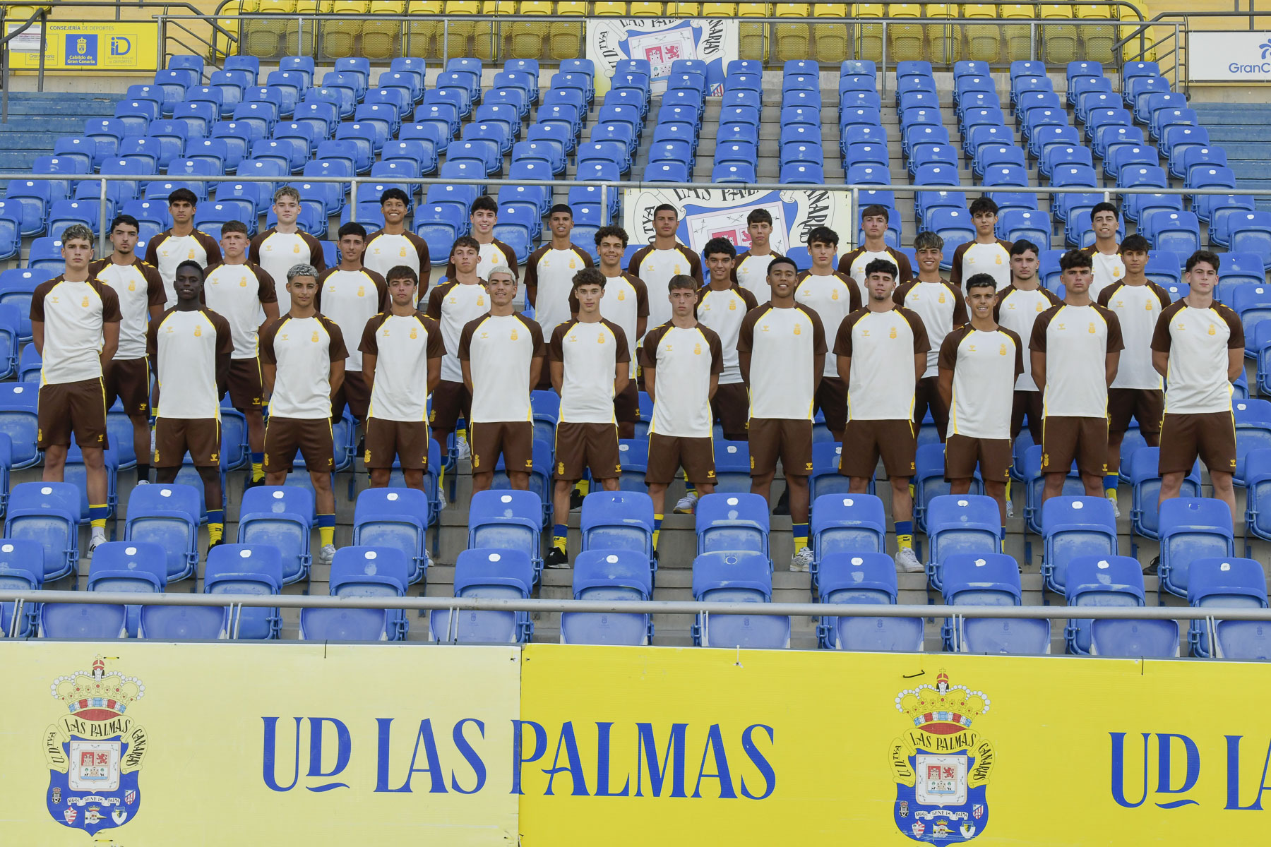 32 jugadores se presentaron este jueves en el Estadio de Gran Canaria. La renovación del plantel de una temporada a otra es muy importante, porque más del 80% de los jugadores de la anterior campaña promocionó al conjunto de División de Honor que entrena Héctor Nuez.