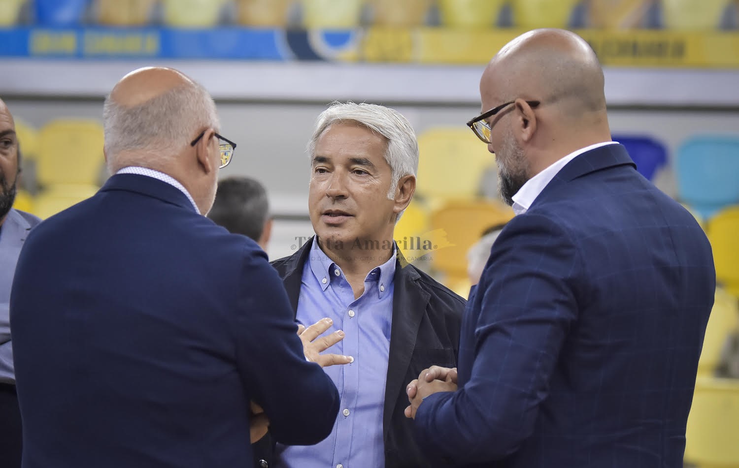 Patricio Viñayo, director general de la UD Las Palmas, en diálogo con Morales y Romero (C. Torres)