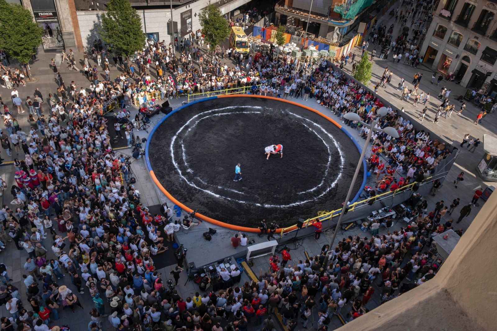 La lucha canaria vivió este sábado una jornada histórica con la celebración, en pleno corazón de Madrid, de una luchada de competición oficial por primera vez lejos de las islas. La céntrica Plaza de Callao, abarrotada de público para la ocasión, se transformó en un terrero que acogió el enfrentamiento entre los clubes de lucha Saladar de Jandía, de Fuerteventura, y Candelaria de Mirca, de La Palma, correspondiente a la vigésima jornada del Torneo DISA Gobierno de Canarias.