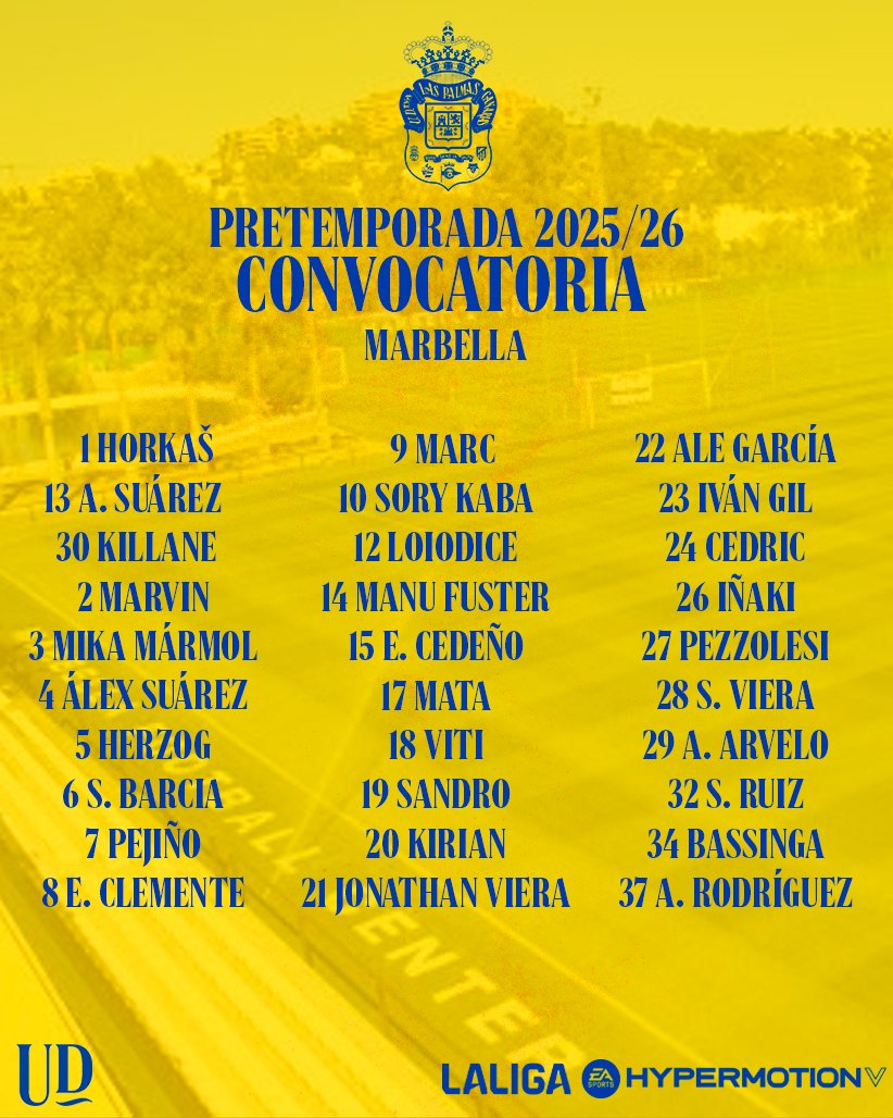 Treinta jugadores son los que desplaza la UD Las Palmas a su stage veraniego que tiene como sede Marbella. En la lista se incluye a los tres últimos fichajes de la pasada semana (Cedeño, Barcia y Jonathan Viera) que continuarán el rodaje de su preparación en suelo andaluz.